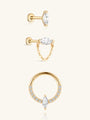 A refined trio inspired by natural lines and elongated silhouettes.Crafted in 14K solid gold and hypoallergenic for sensitive piercings, each piece offers lightweight, all-day comfort. Designed to stack effortlessly, this set brings soft elegance and organic shine to any curated ear.