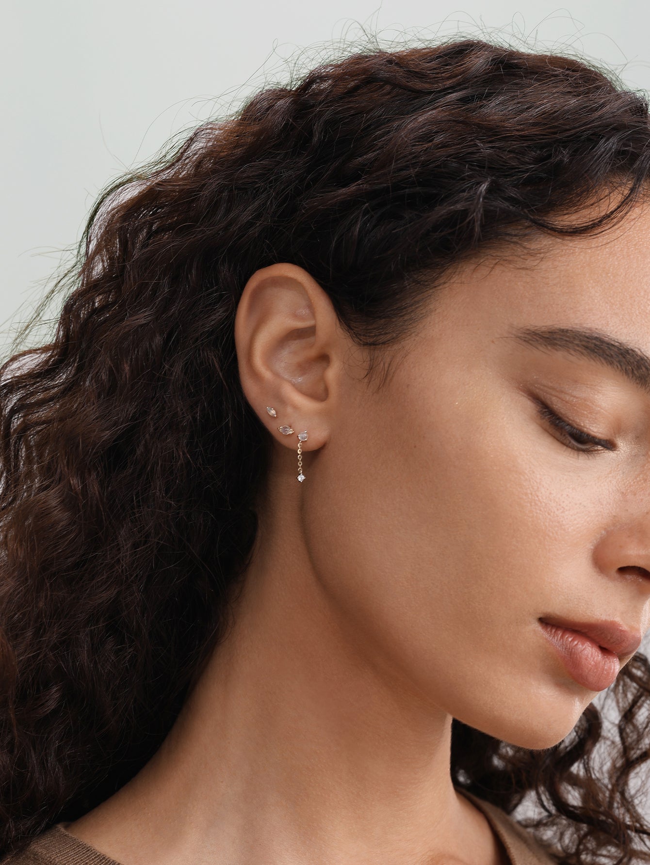 14-karätiger Marquise-Mondstein-Ohrstecker aus massivem Gold mit flacher Rückseite