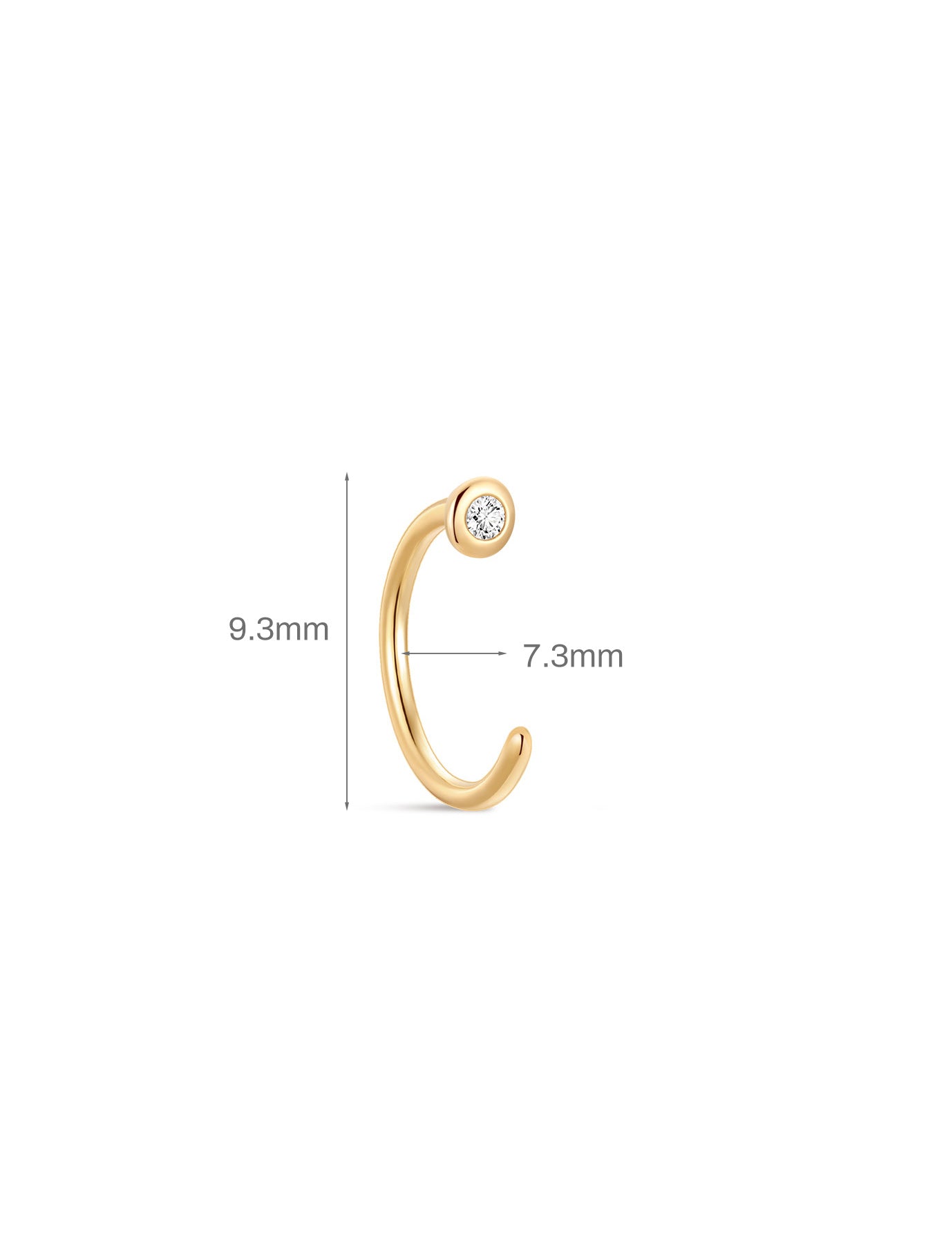 Offene Solitär-Huggie-Ohrringe aus 14-karätigem Gold mit runder Lünette