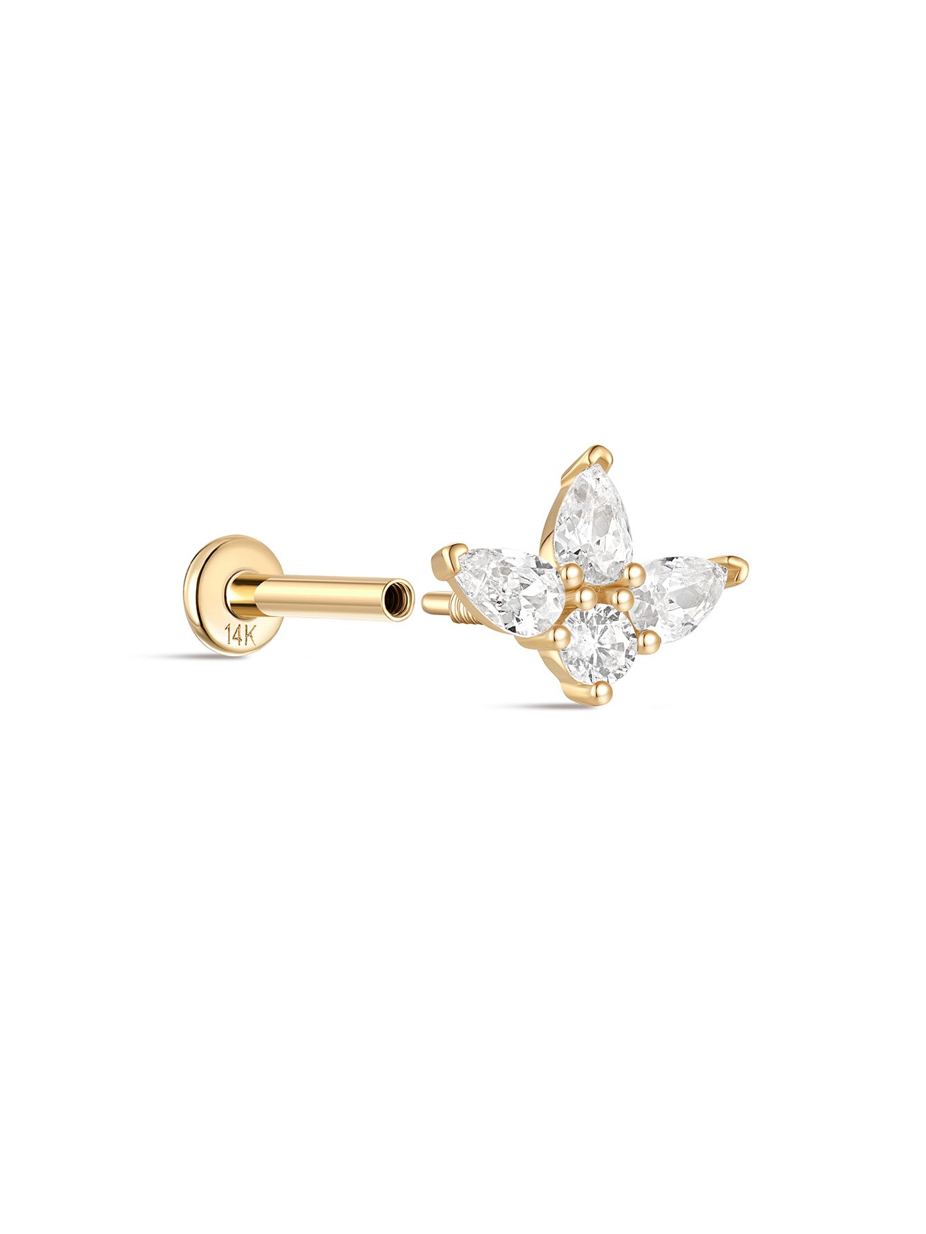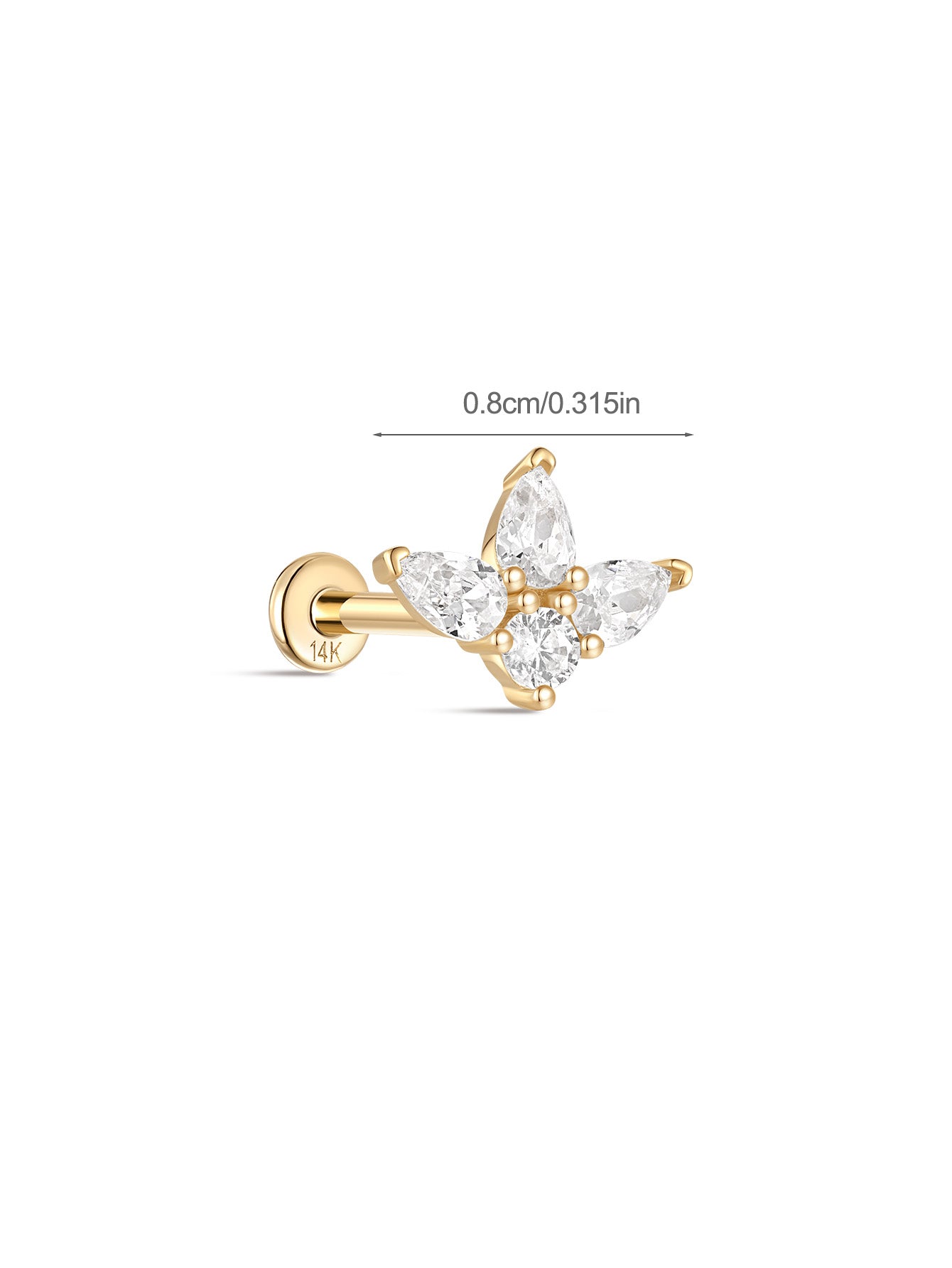 - Materialien: Oberseite aus 14-karätigem Massivgold, Pfosten mit flacher Rückseite aus 14-karätigem Massivgold