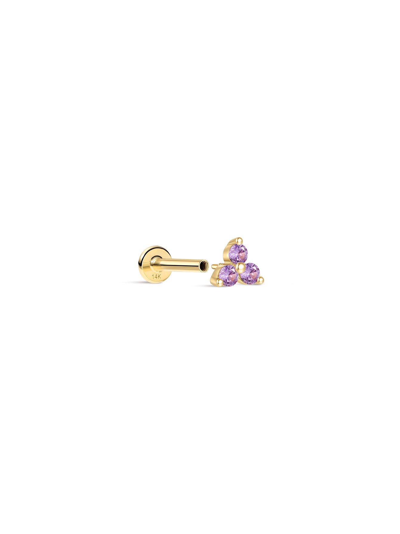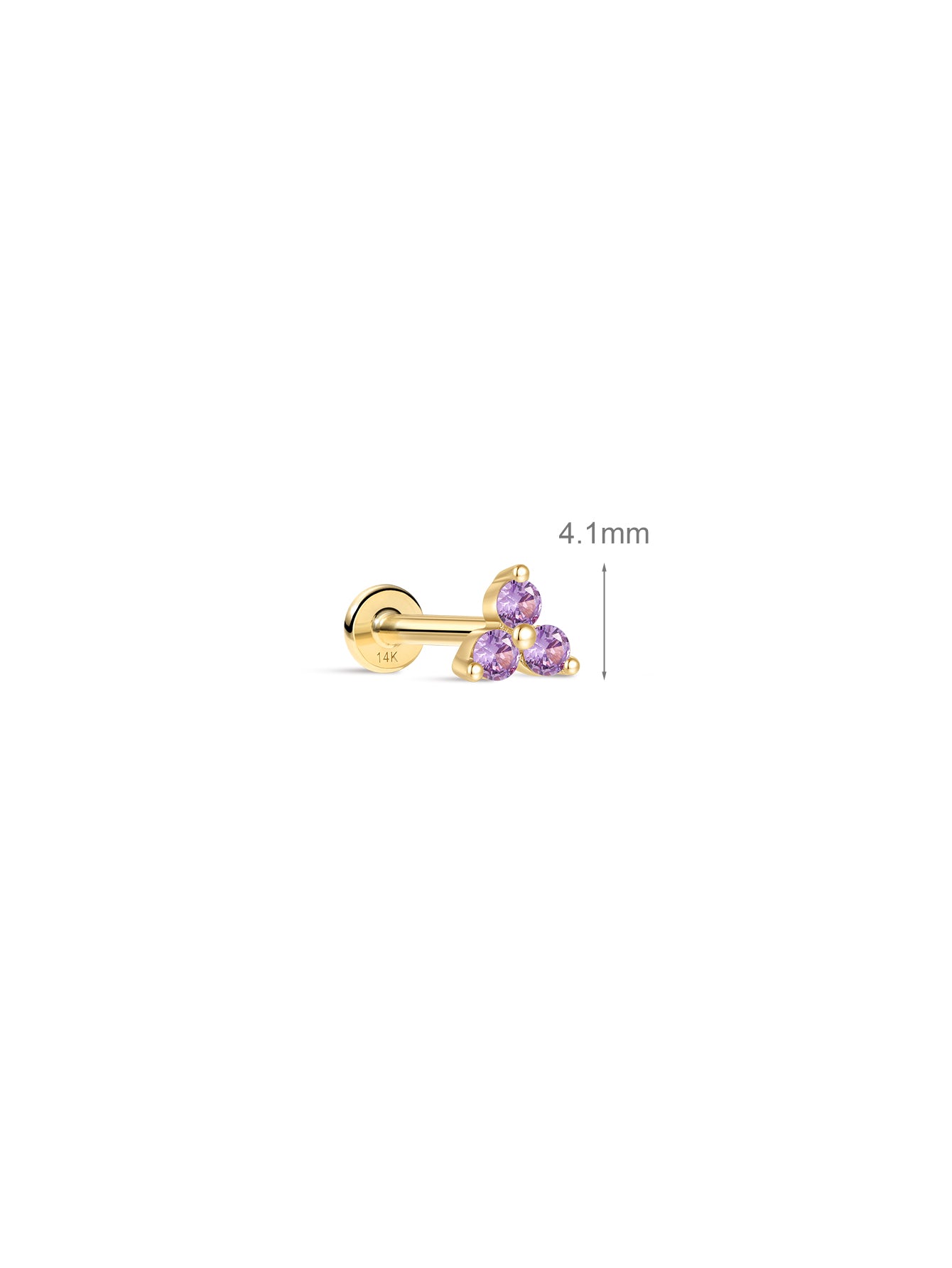 Ohrstecker aus 14-karätigem Massivgold mit glänzendem Geburtsstein Februar-Dreifaltigkeit