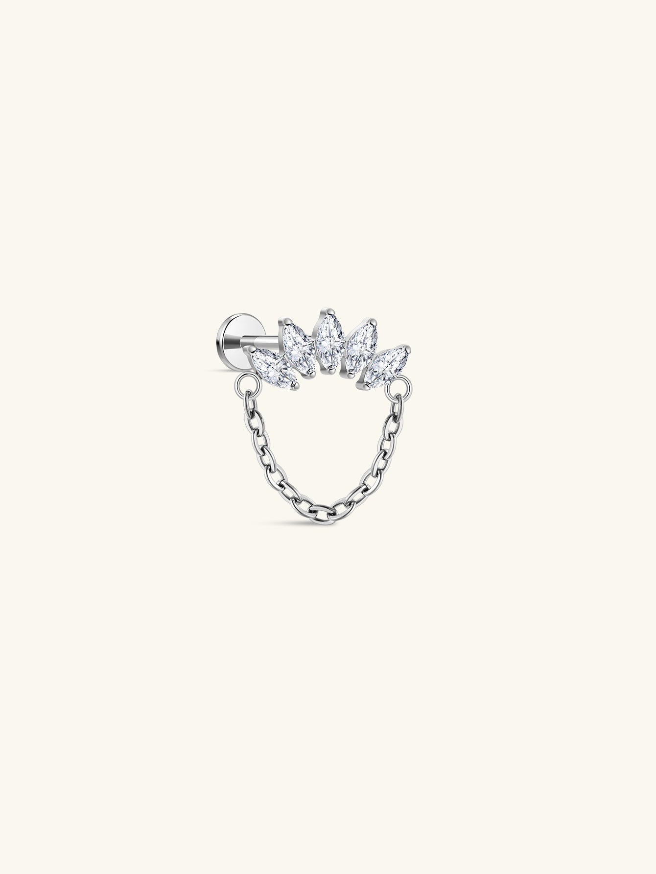 Dieses Design kombiniert scharfe CZ-Steine im Marquise-Schliff mit fließenden Ketten, um eine kühne und dennoch raffinierte Silhouette zu schaffen. Es besteht aus Titan in Implantatqualität, ist hypoallergen und sicher für empfindliche Haut und bietet professionellen Piercing-Komfort und ein sicheres, leichtes Gefühl für sicheres, langfristiges tägliches Tragen.