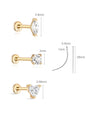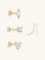 A symbolic trio—leaf, mini CZ, and heart—crafted in 14K solid gold for hypoallergenic, everyday comfort and effortless stacking across any curated ear.