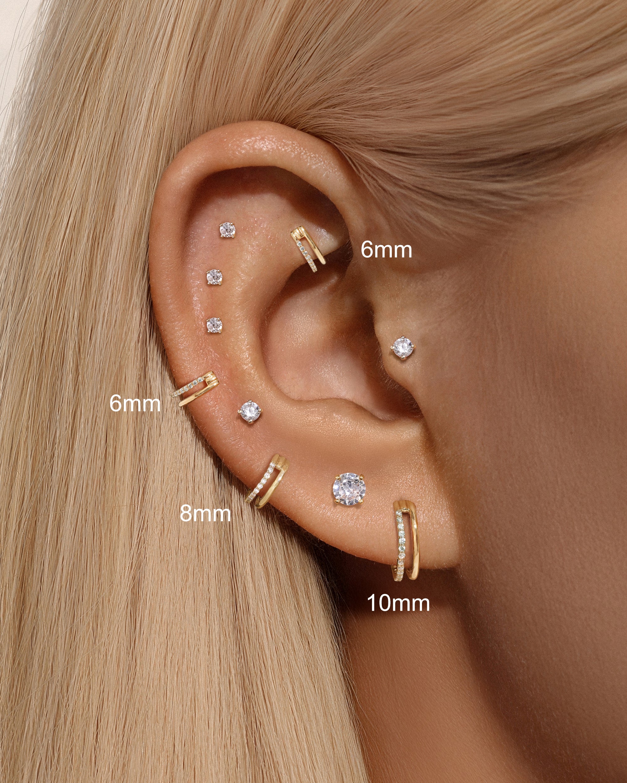 Pendiente de aro pavé de una hilera de doble capa de oro macizo de 14 quilates