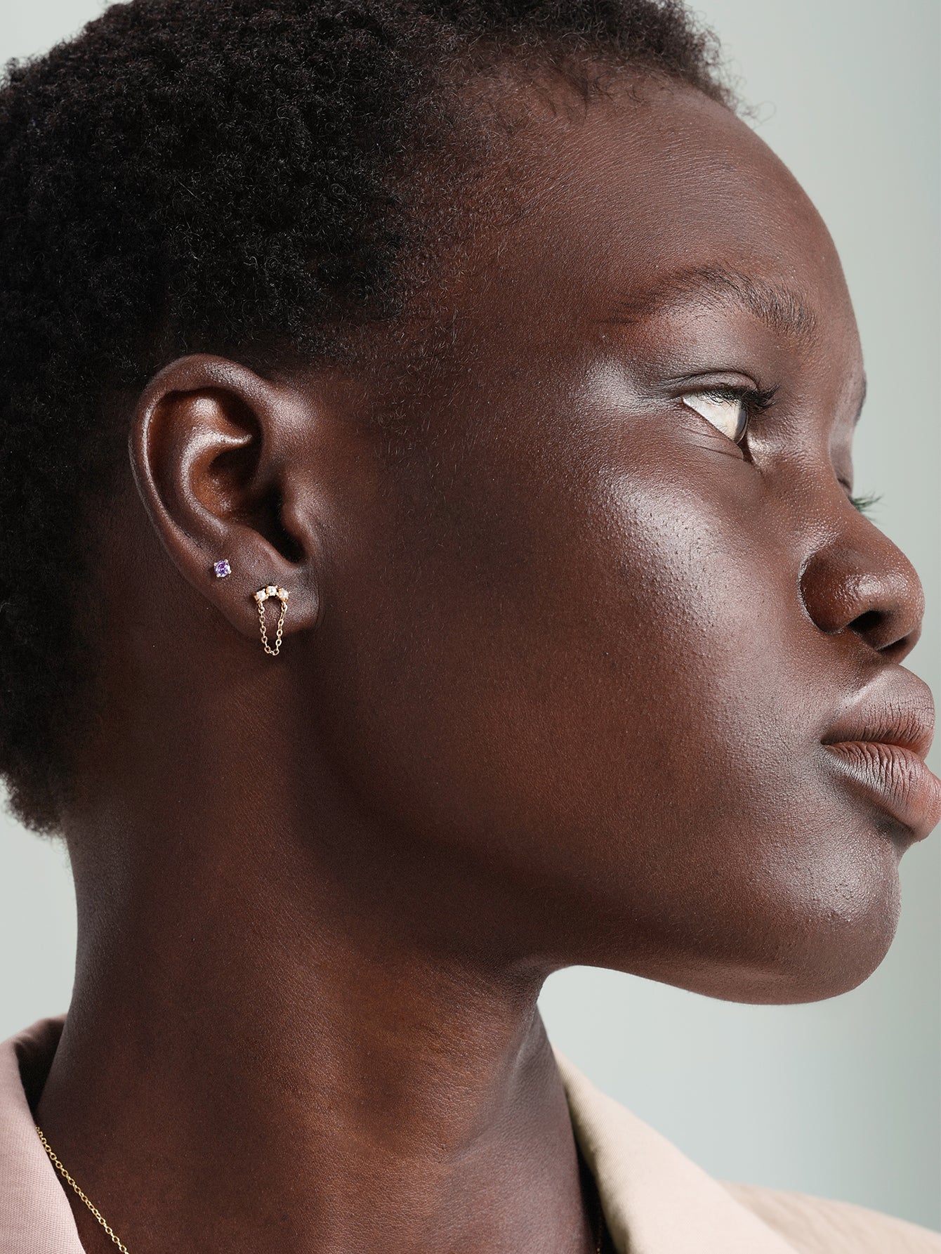 Pendientes con piedra natal de febrero de oro macizo de 14 quilates