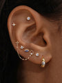 Designed for a softer drape, this baby rolo chain in 14K solid gold moves with quiet elegance between two piercings. A minimal yet expressive detail that adds refined texture to your curated ear.