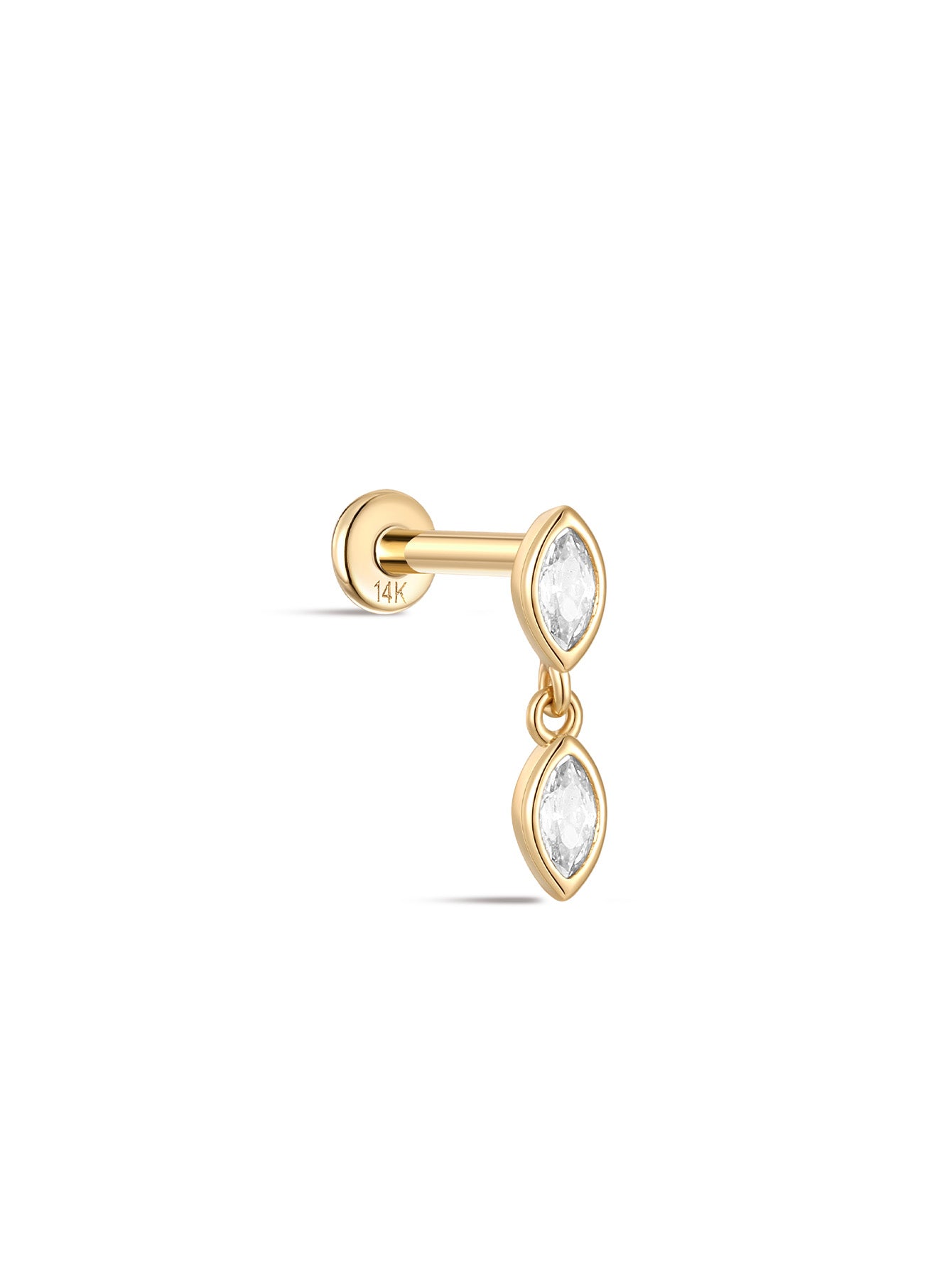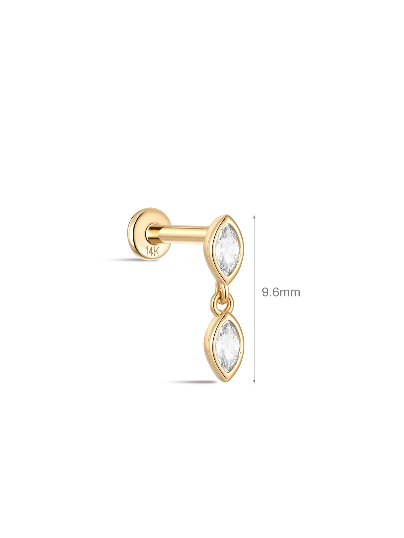 Clou de perçage d'oreille en zircon avec lunette marquise en or massif 14 carats