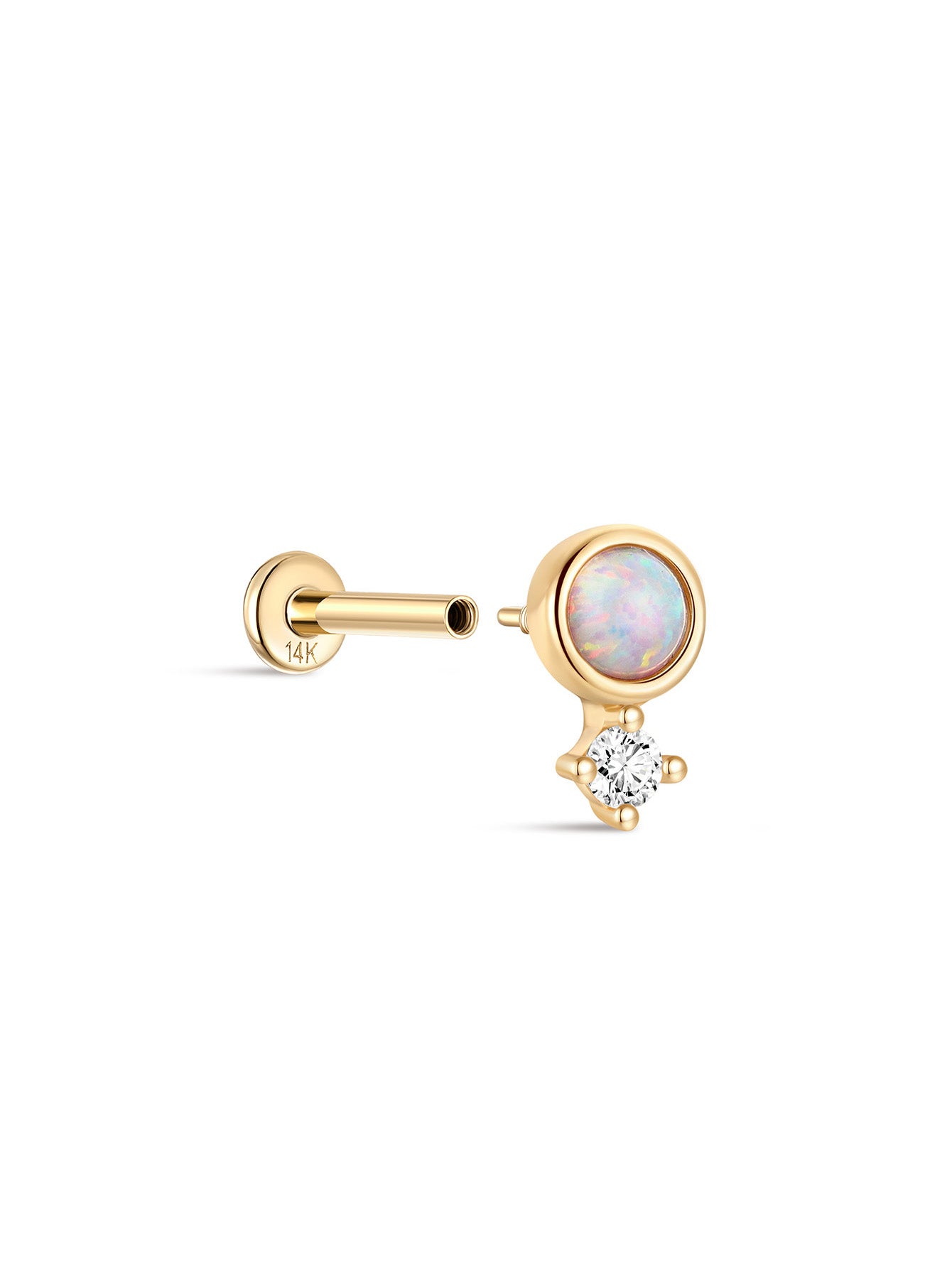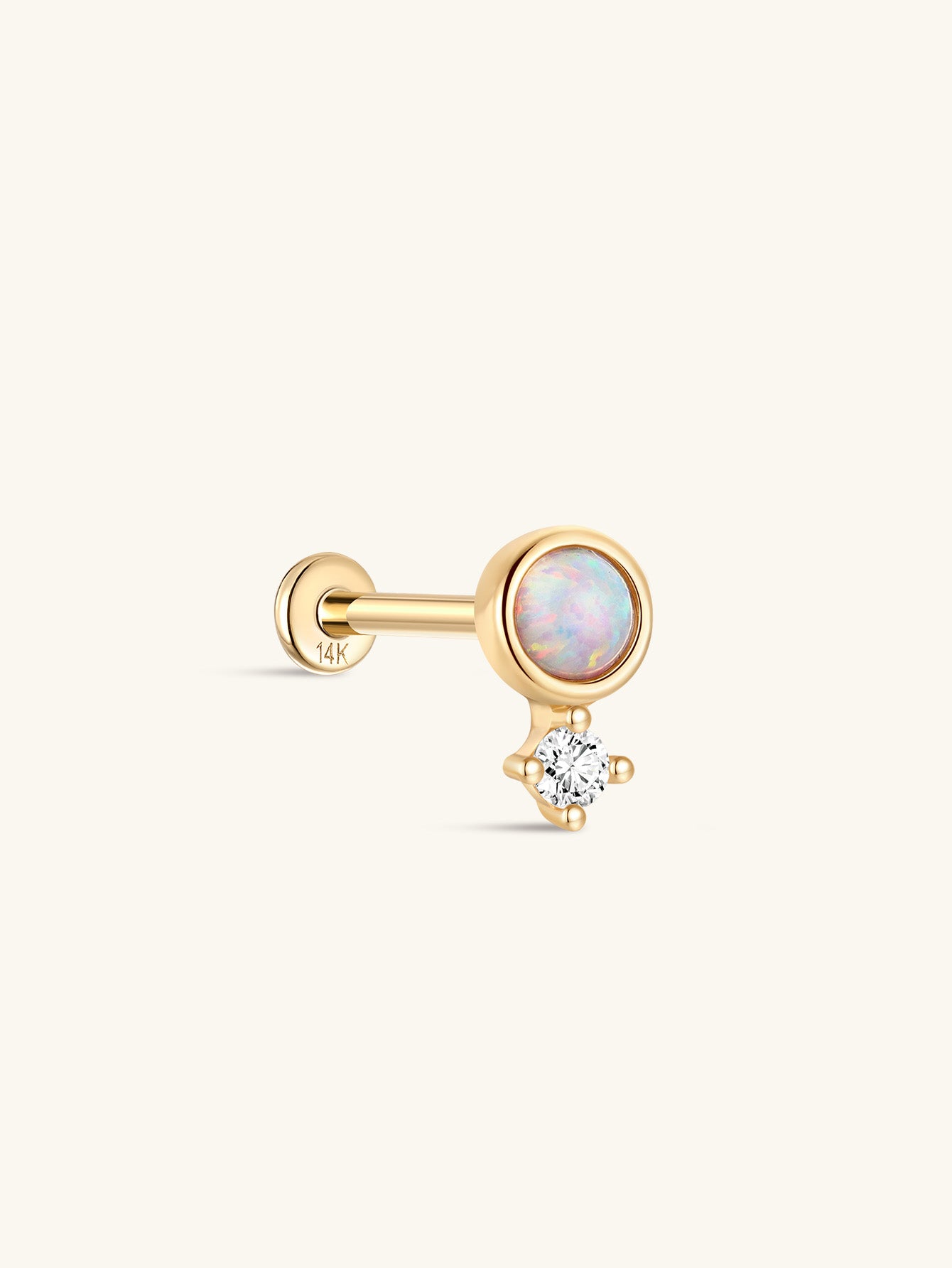 Clou de perçage d'oreille en or massif 14 carats avec opale unique
