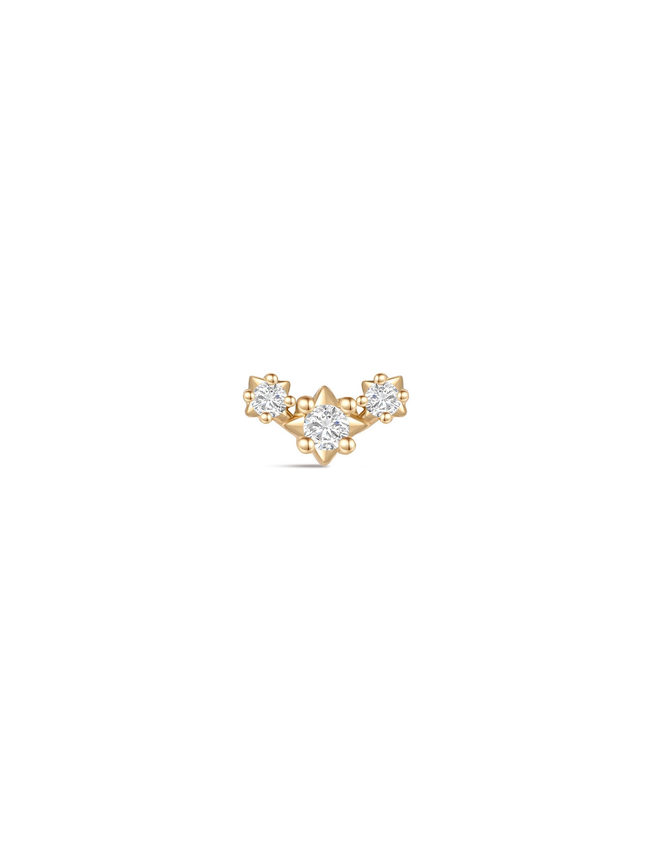 Clou d'oreille triple étoile en or massif 14 carats