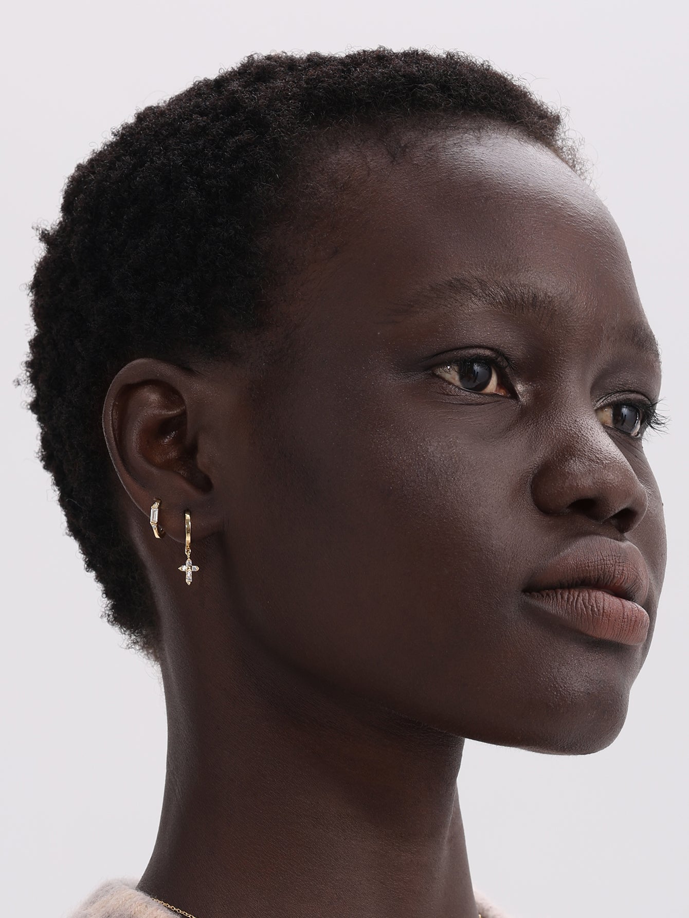 Créoles carrées en or vermeil 18 carats et zircones cubiques