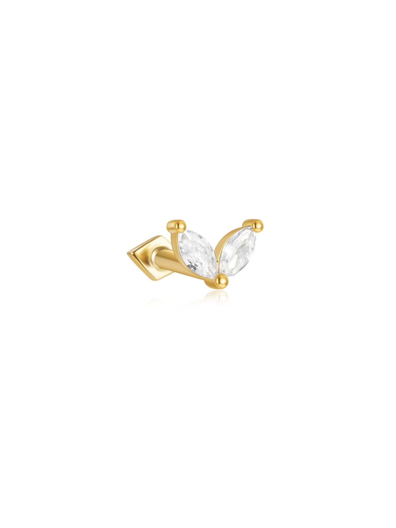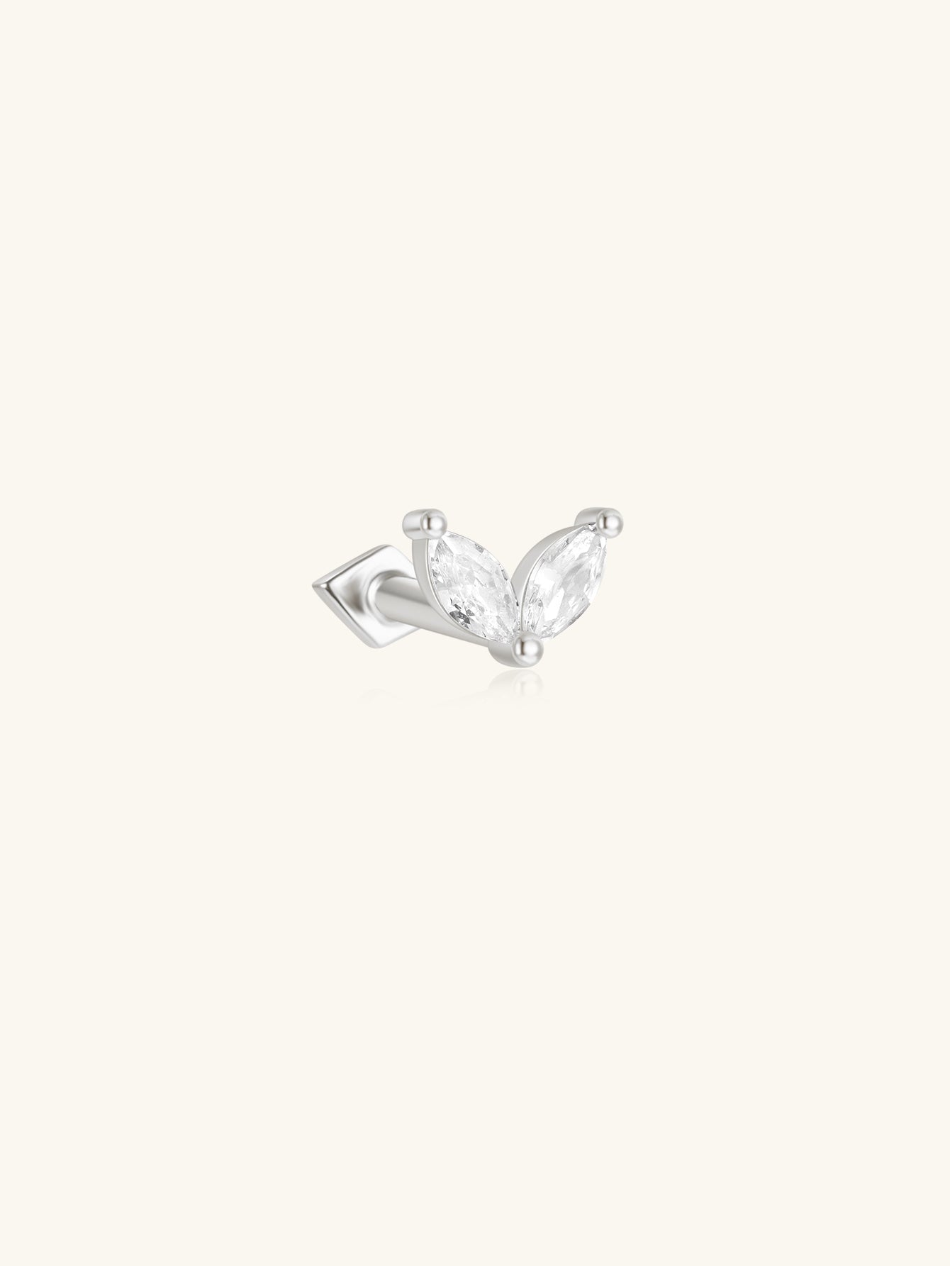 Clou de perçage d'oreille réversible en argent sterling 925 avec germes de marquise
