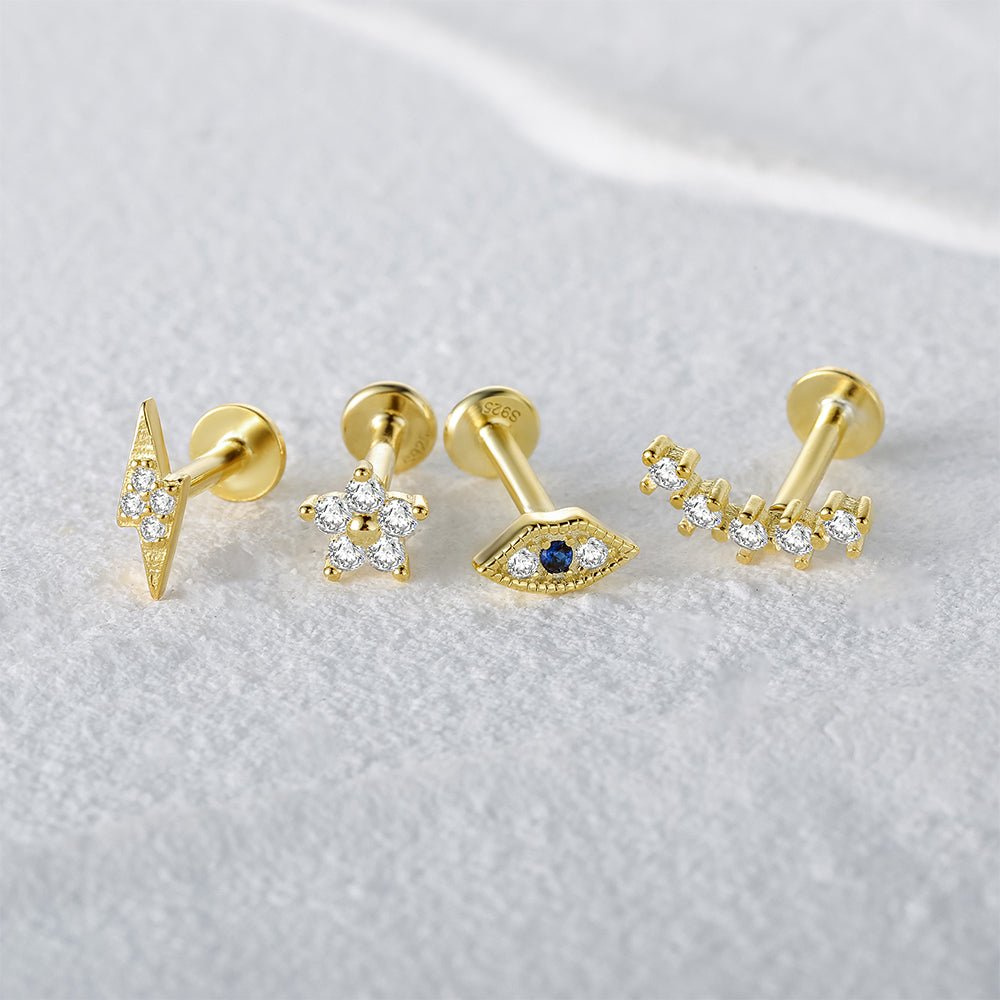 Clou de perçage d'oreille fileté en argent sterling 925 avec arc CZ