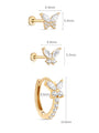 Three takes on the butterfly—simple, sparkling, and luminous. Crafted in 14K solid gold with hypoallergenic comfort, this trio brings airy elegance and refined shimmer to your ear stack. A soft, modern symbol of transformation and light.