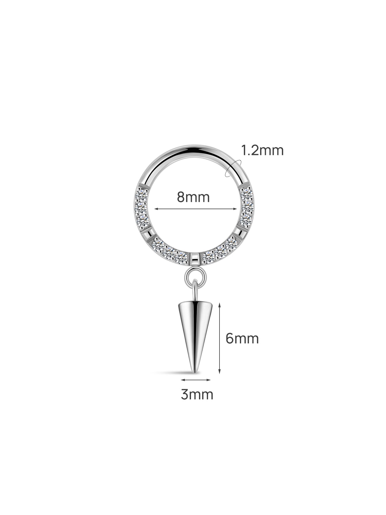 Progettato con una punta affilata per un look audace e spigoloso, questo cerchio è realizzato in titanio per impianti per il massimo comfort e durata. Ipoallergenico e delicato sulla pelle sensibile, offre sicurezza professionale nel piercing pur rimanendo leggero e stabile per un uso a lungo termine.