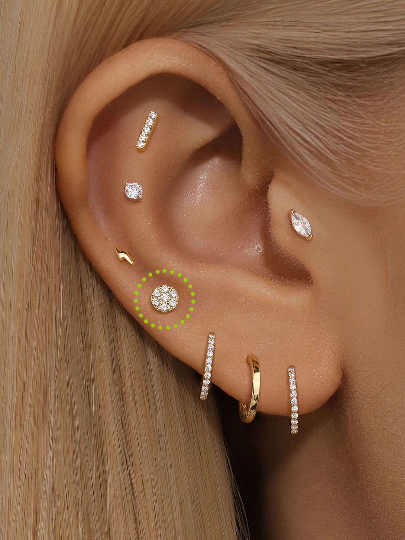 Perno per piercing all'orecchio rotondo classico in oro massiccio 14 carati