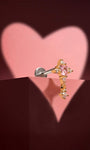 ピンク リチュアル クロス ドロップ スタッド – 925 スターリング シルバー ピンク CZ フラットバック