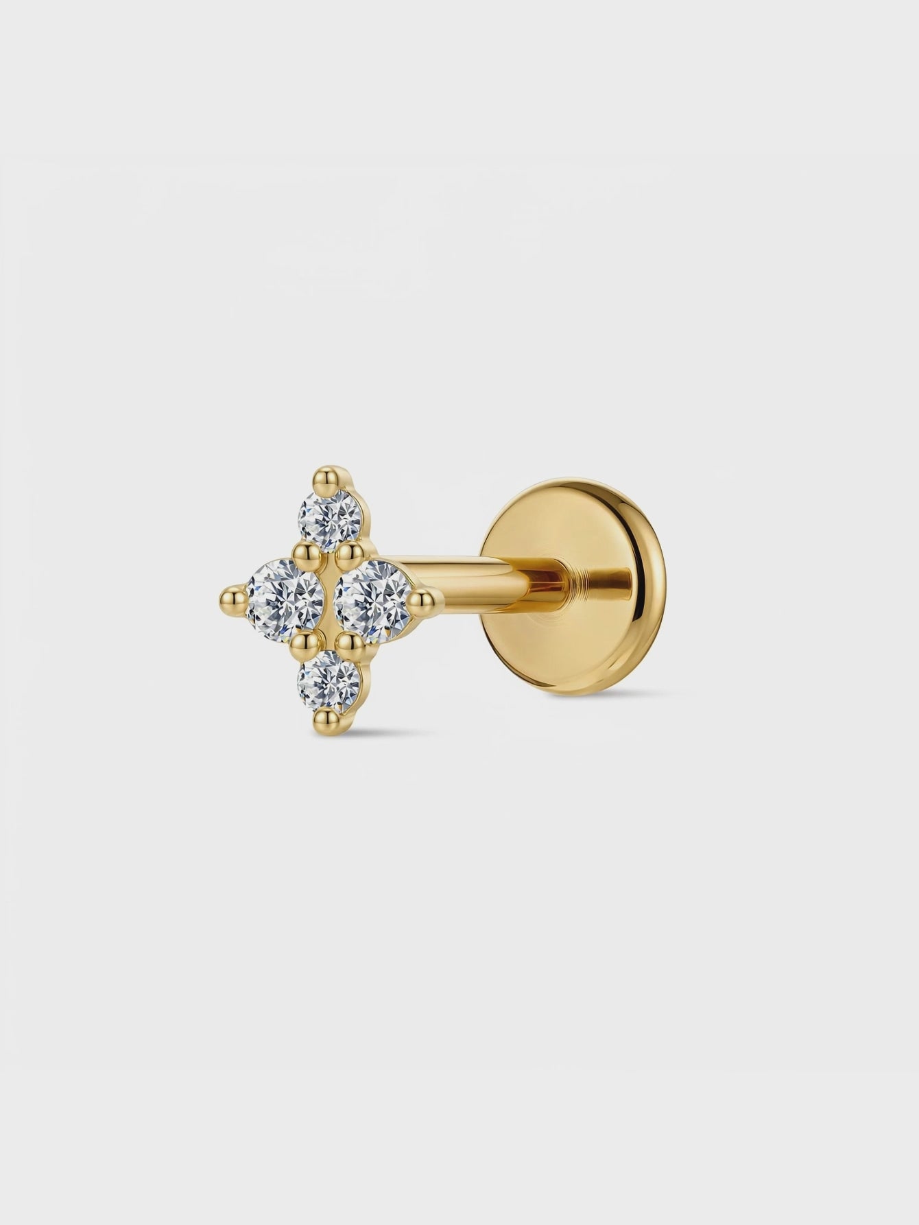 14K Gold Clover Lab-Grown Diamond Flat Back Delicate Stud