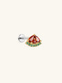 Color meets precision. The Watermelon Flat Back Stud transforms the iconic fruit slice into a structured, multi-stone silhouette. Deep red stones form the juicy center, framed by a row of vivid green accents to create a crisp chromatic contrast. The curved base enhances dimension while maintaining a clean profile against the ear. Crafted in 925 sterling silver and finished with 18K gold plating, this internally threaded flat-back design offers a secure and comfortable fit for daily wear. Compact yet expressive, it brings brightness and structure to curated ear stacks. The titanium post upgrade offers a solid, non-plating alternative that is extra durable and ideal for sensitive skin, while preserving the refined gold appearance.