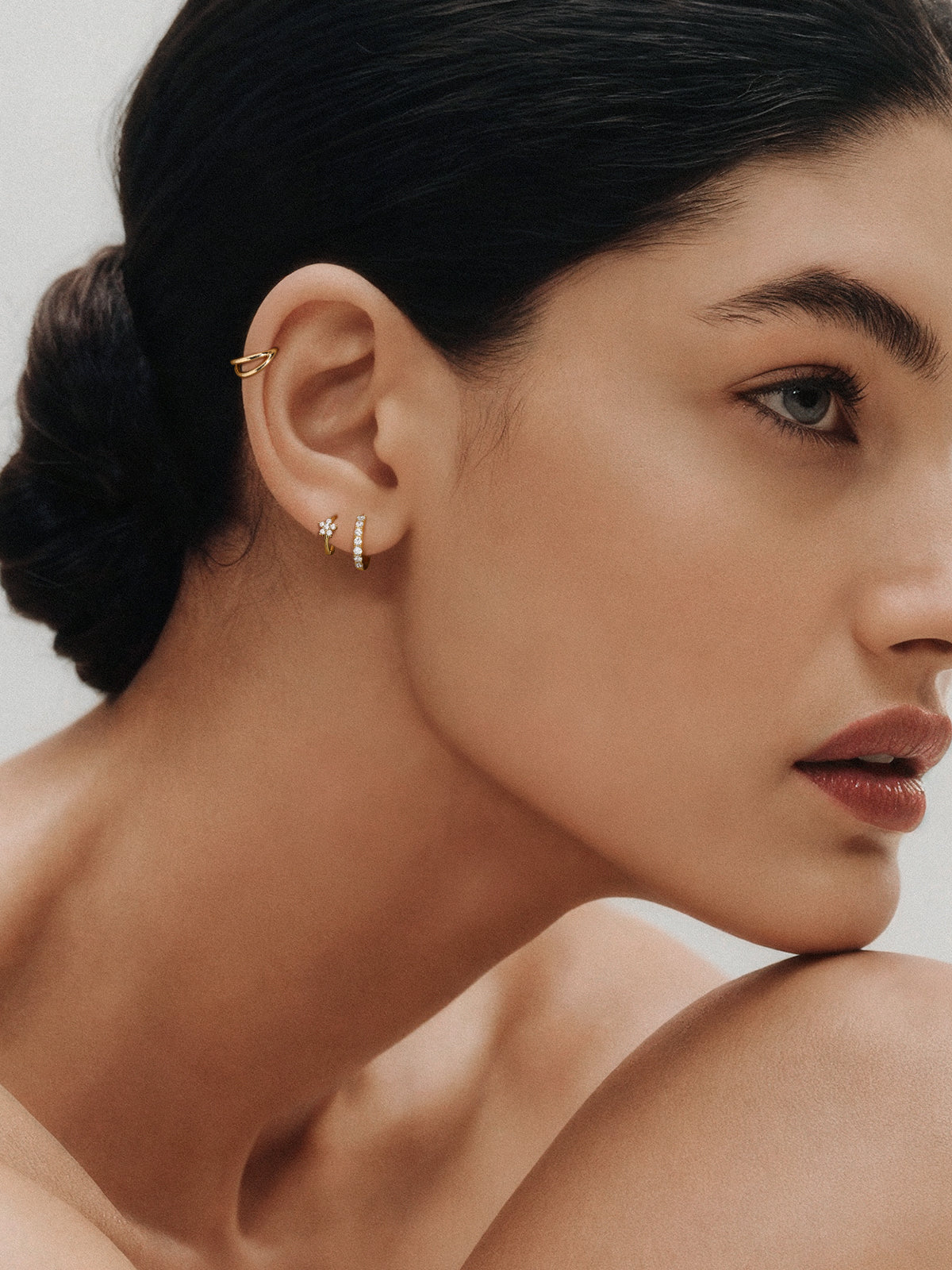 Subtle Sparkle, Serious Style — Lab-grown diamonds meet 14K gold hoops for your office OOTD