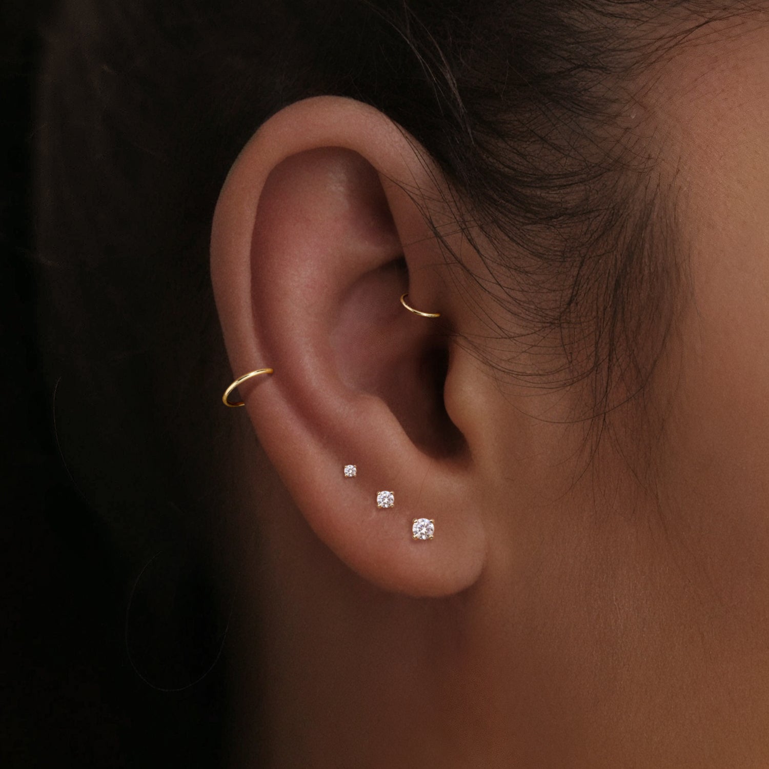 Minimalist 2–4mm lab-grown diamonds in 14K solid gold hoops — like invisible armor for the workplace.