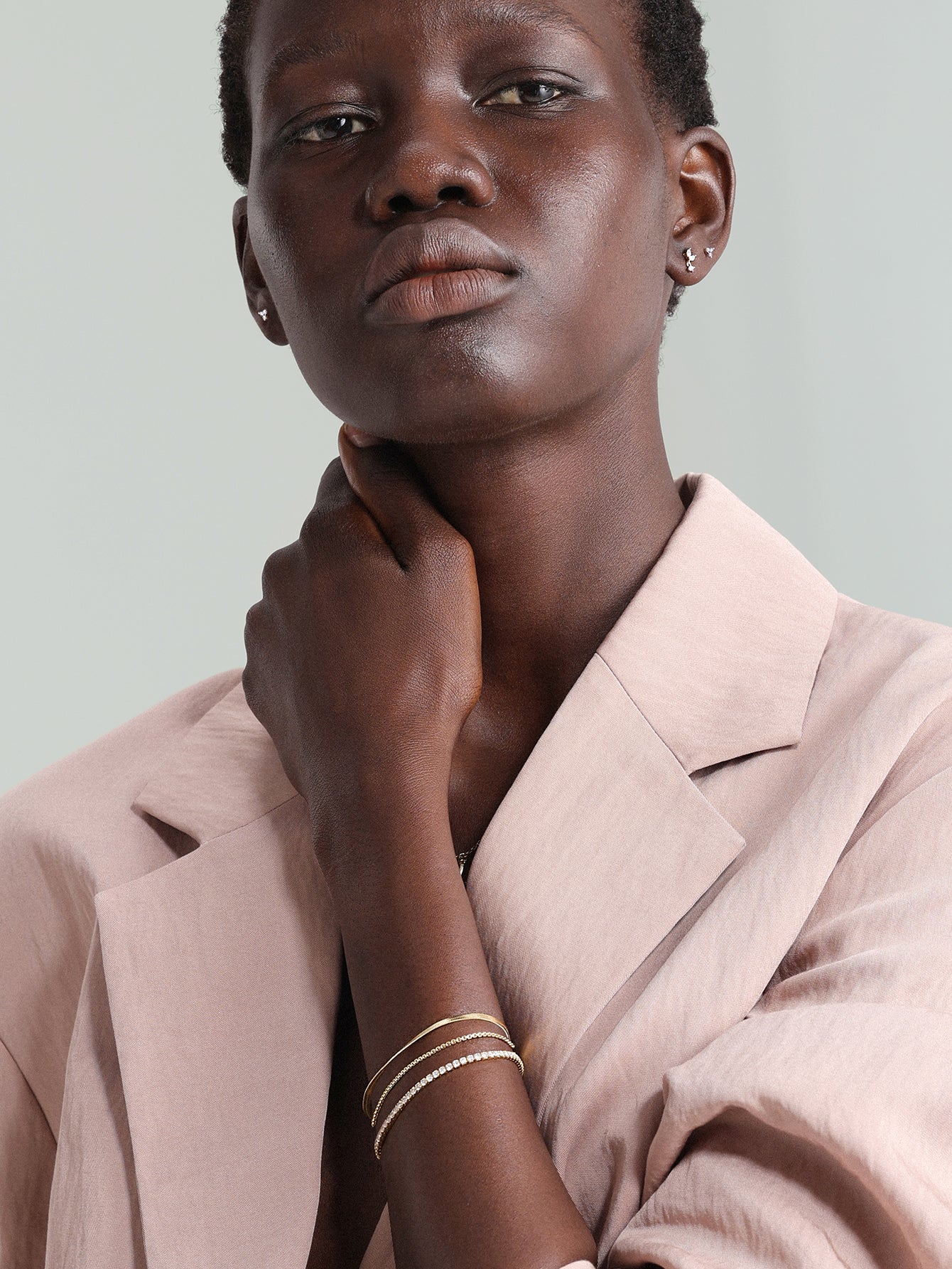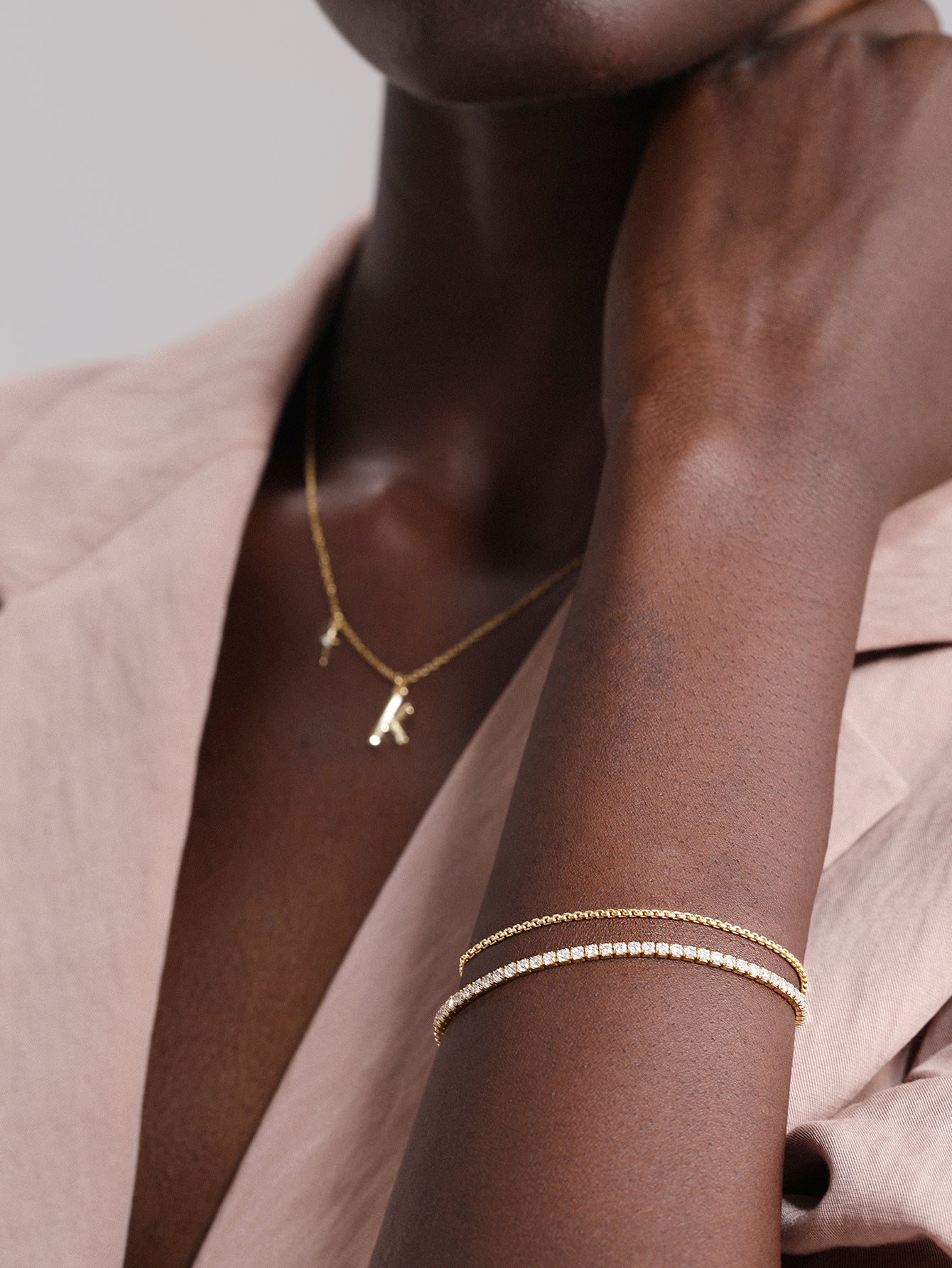 Rząd precyzyjnie przyciętych kamieni CZ zapewnia jasny, wyrafinowany blask. Oprawione w bogate 18-karatowe złoto vermeil zapewniające trwały blask. Ubierz go lub załóż do dżinsów – nie bez powodu jest klasyczny.