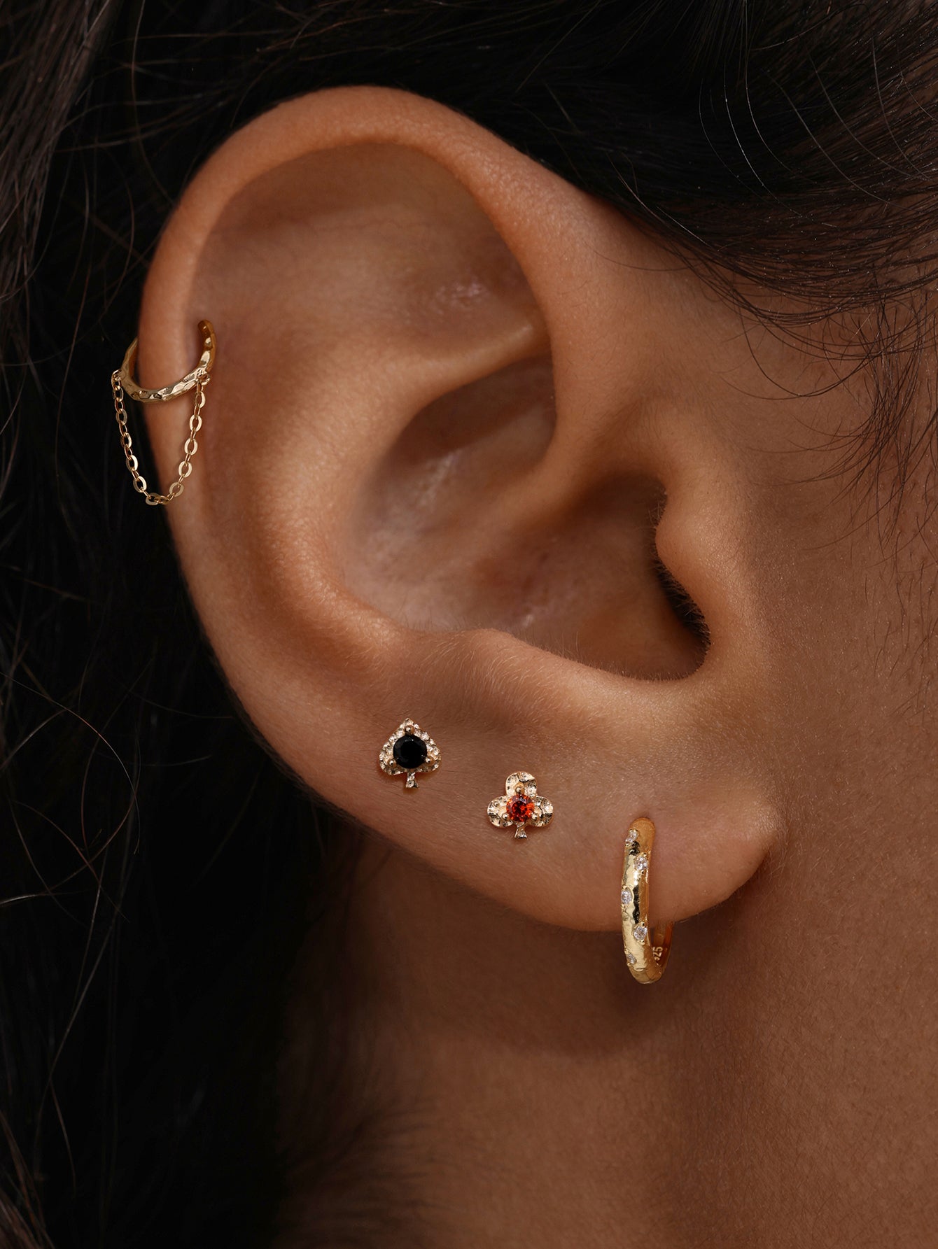 Hand Hammered Spade Black Stone Flatback in 14K Solid Gold