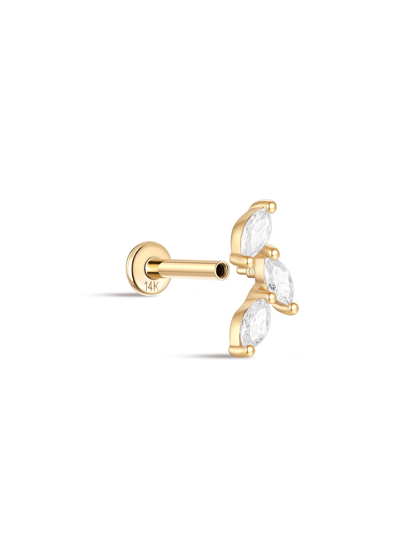 - Materiały: Top z 14-karatowego złota, słupek z 14-karatowego złota z płaskim tyłem