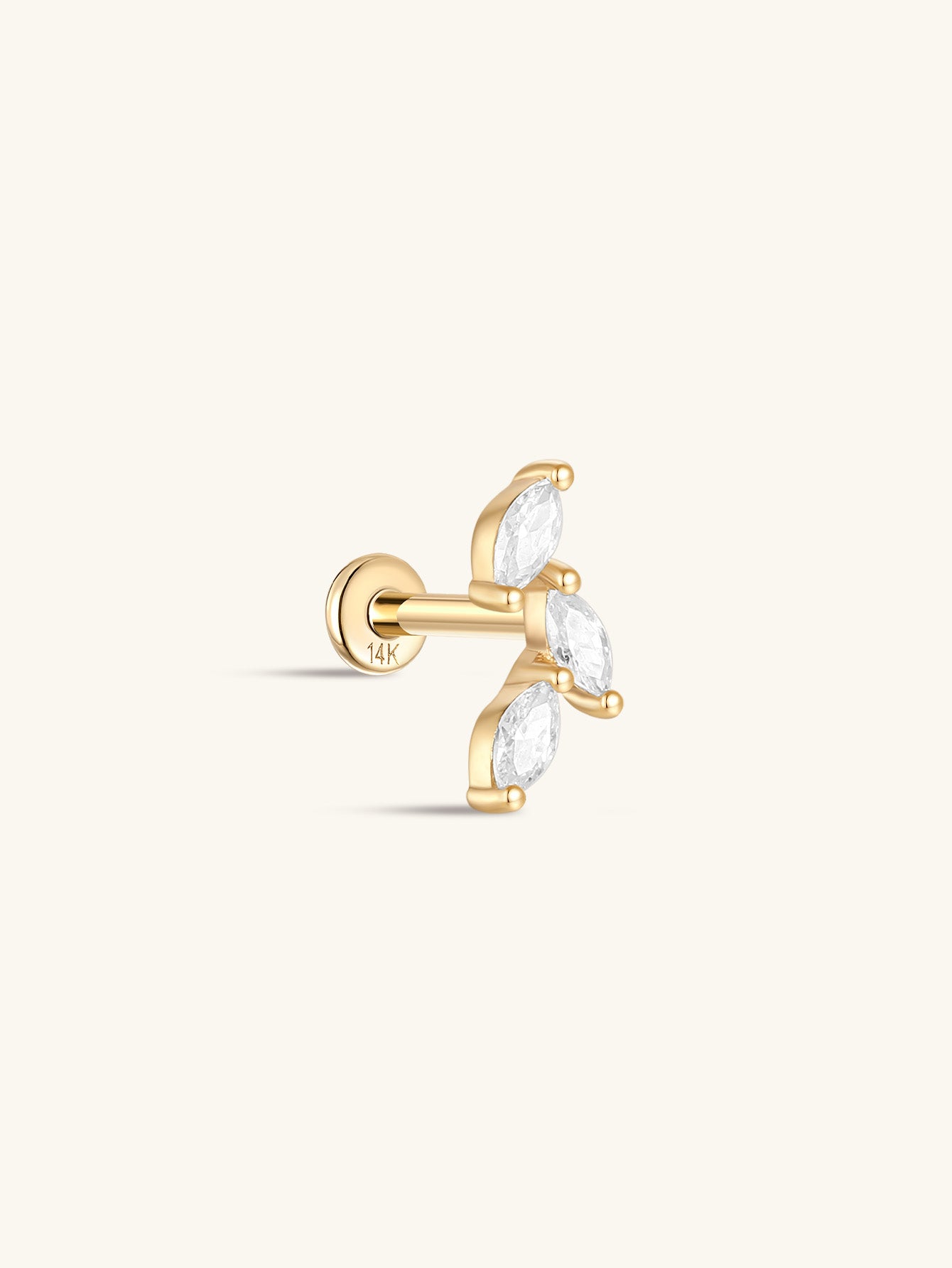 Kolczyk do przekłuwania uszu z 14-karatowego złota z opadającymi liśćmi