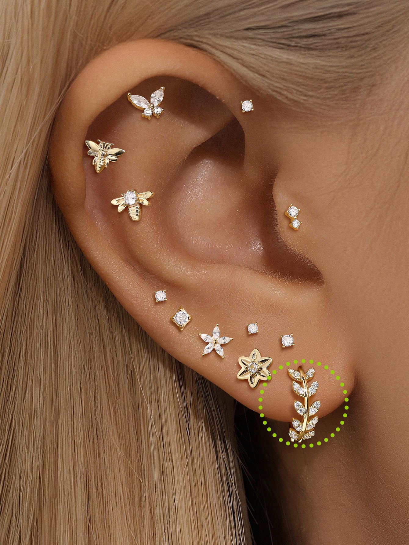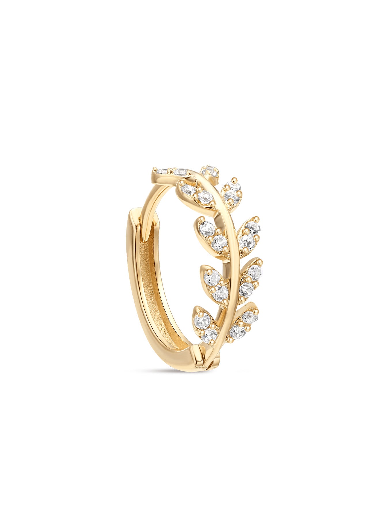 Kolczyki koła z cyrkoniami i liśćmi z 14-karatowego złota