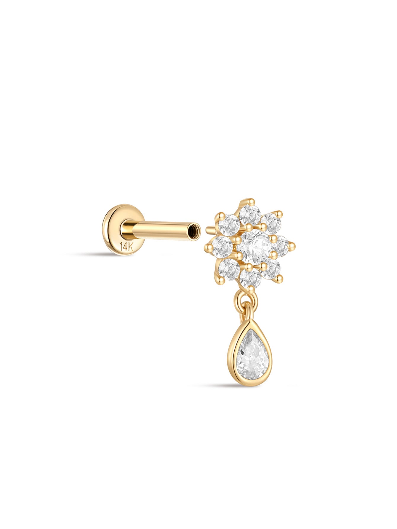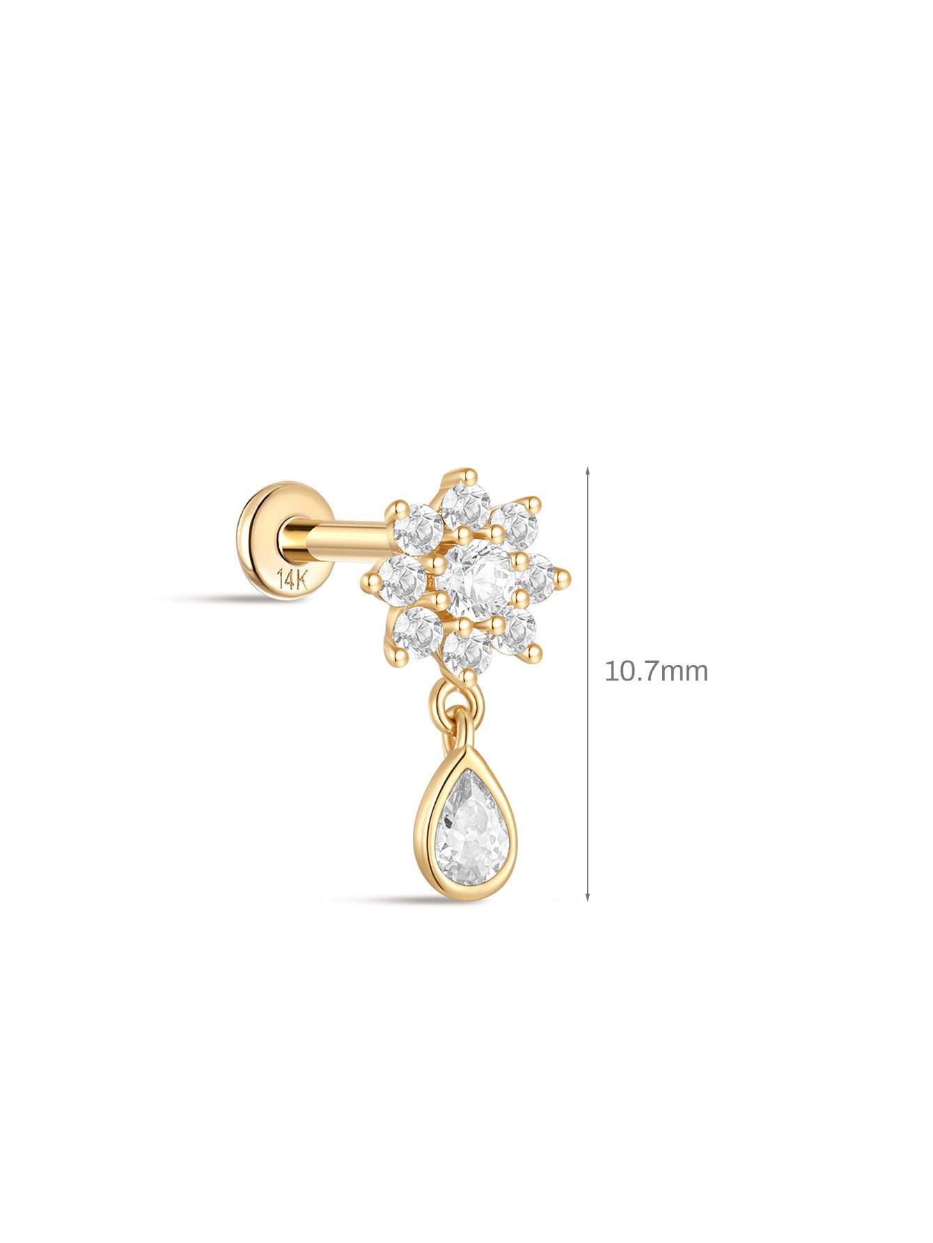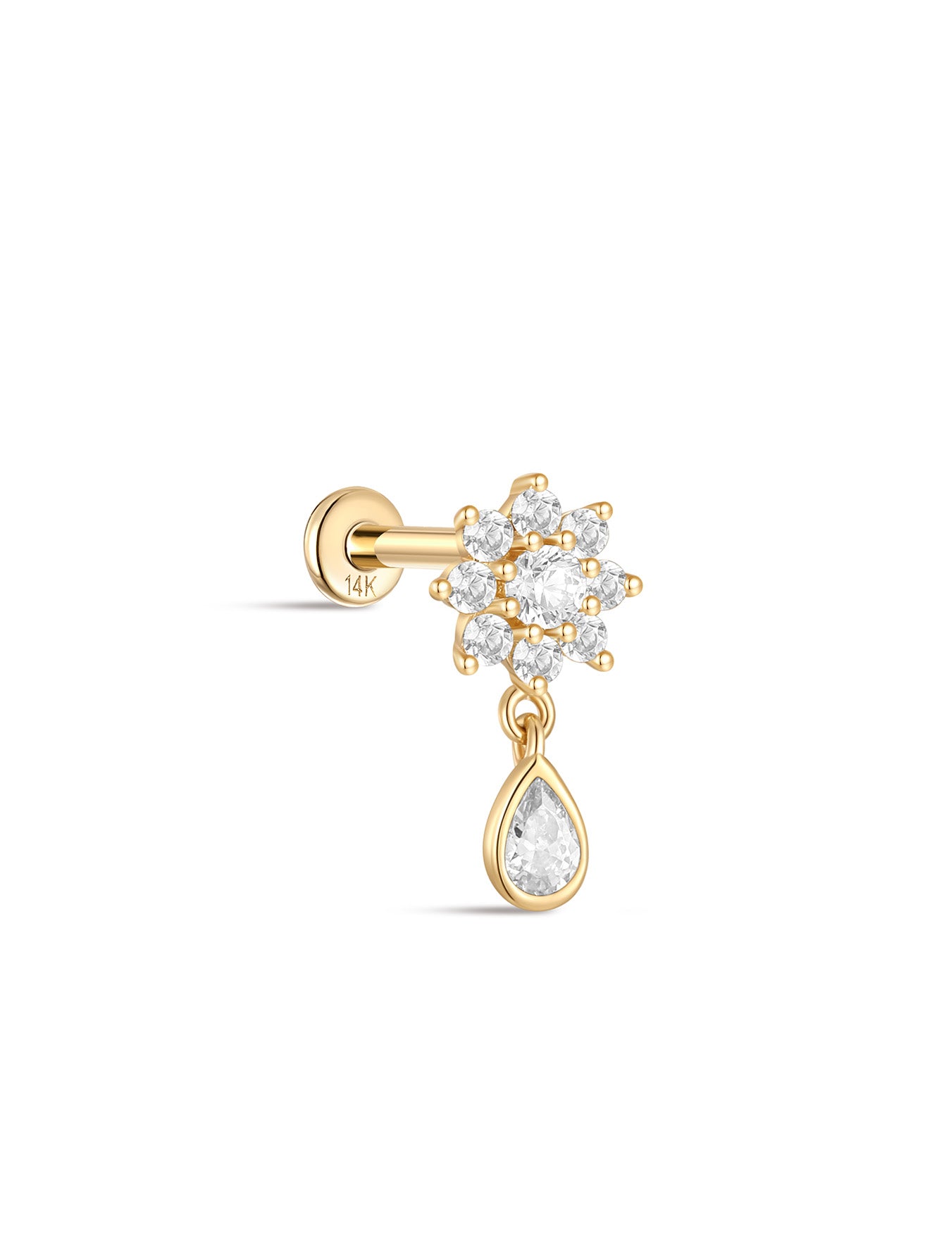 Wisiorek w kształcie kwiatka z 14-karatowego złota, kolczyk w uchu
