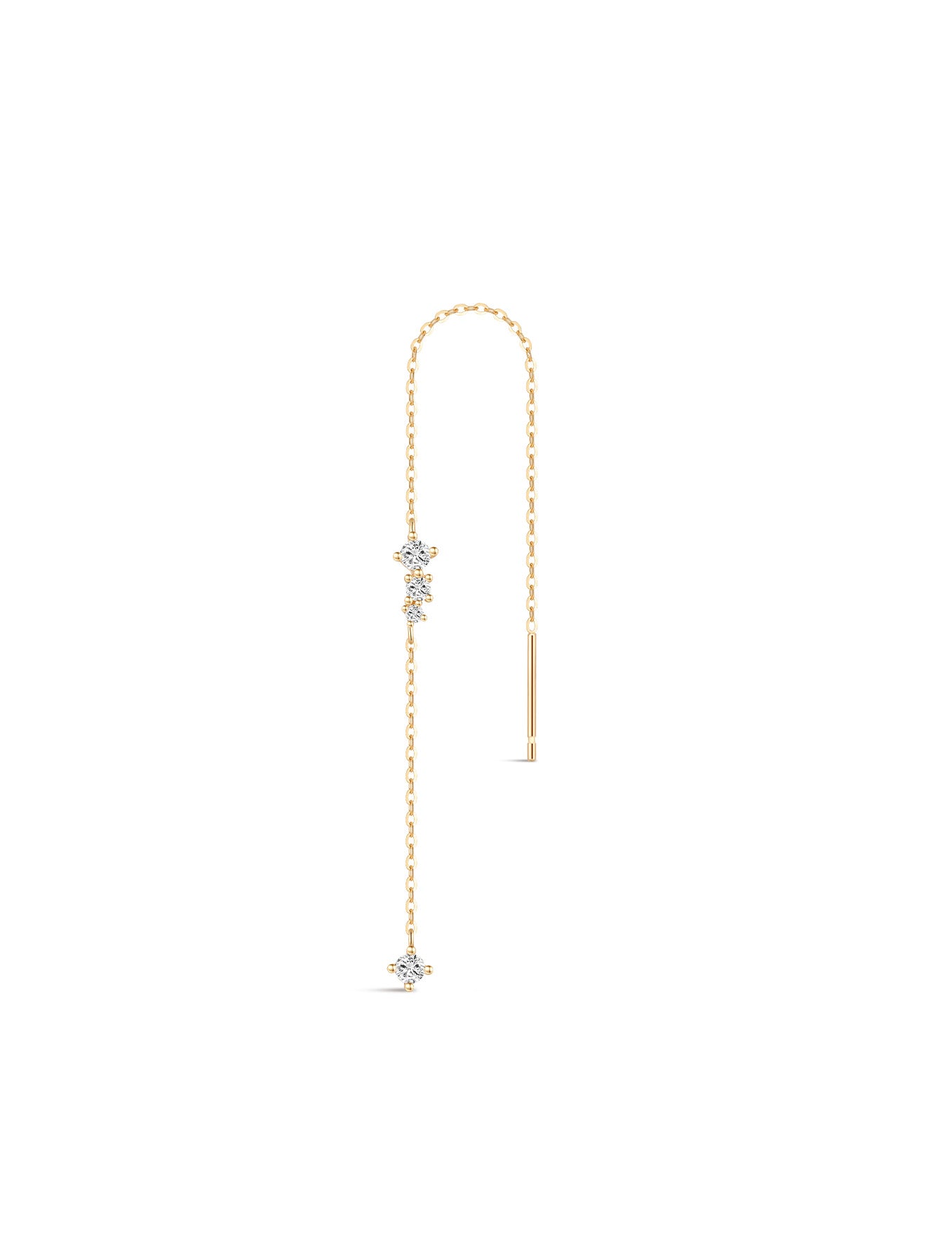 Drucik do uszu z łańcuszkiem z 14-karatowego złota i frędzlami z wieloma diamentami