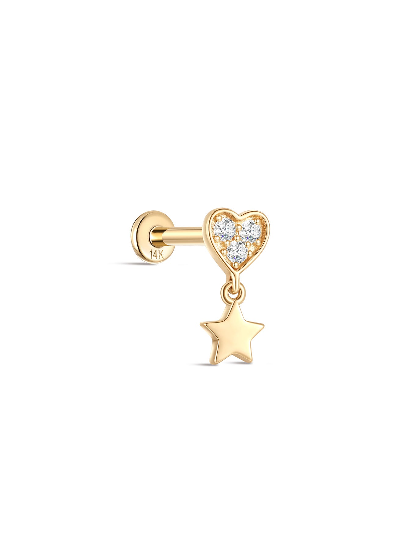 Wisiorek z 14-karatowego złota, błyszczącą gwiazdą, kolczyk w uchu