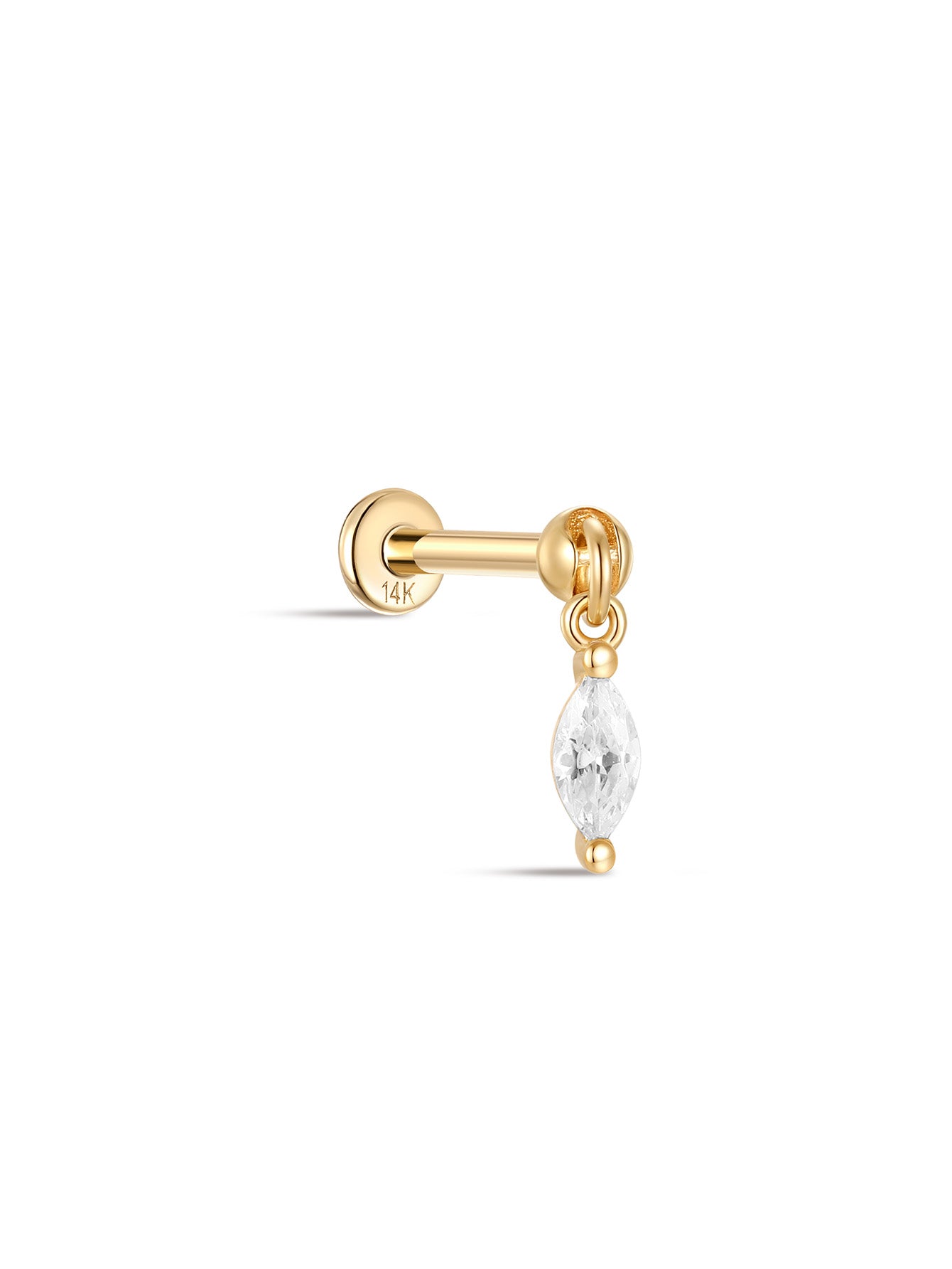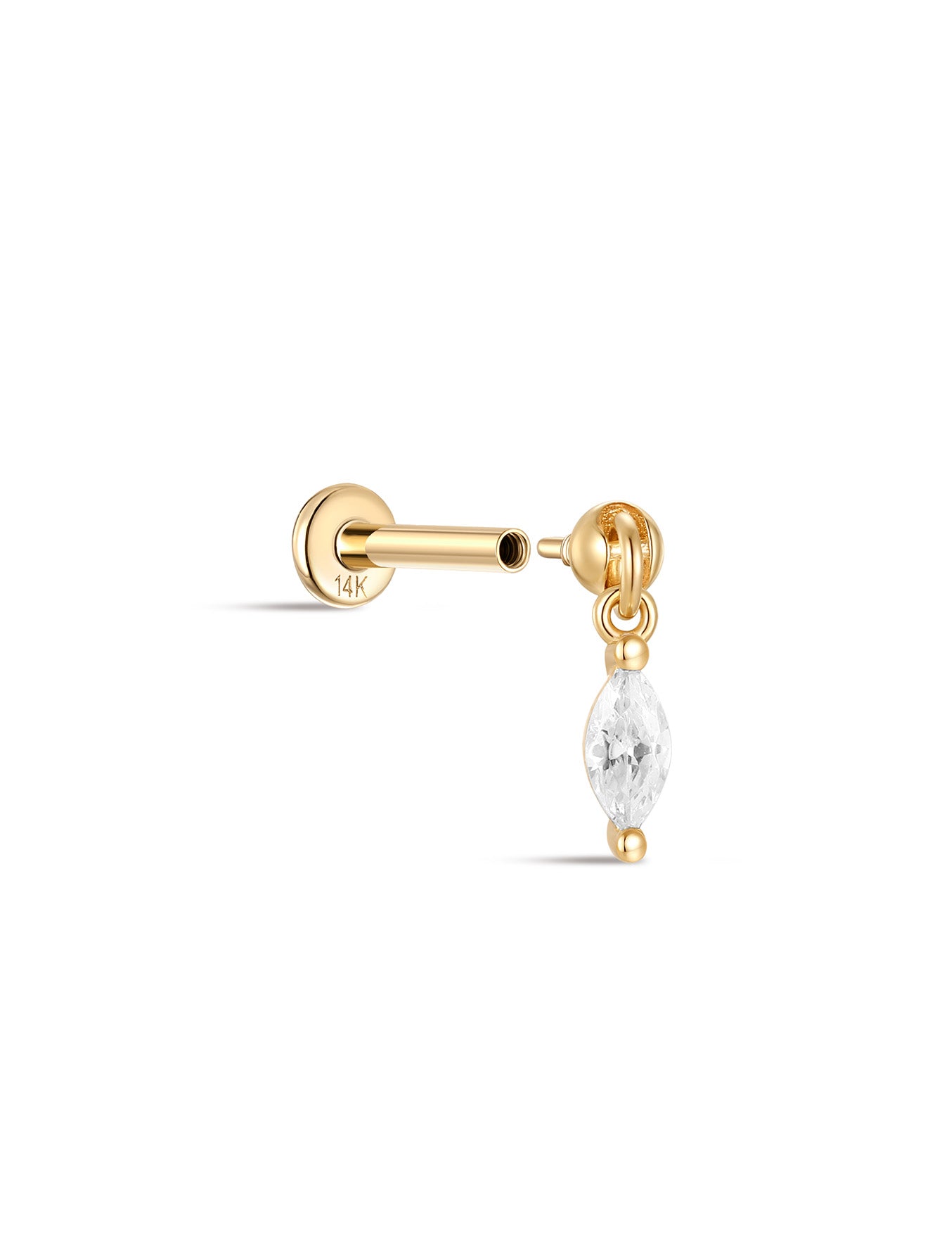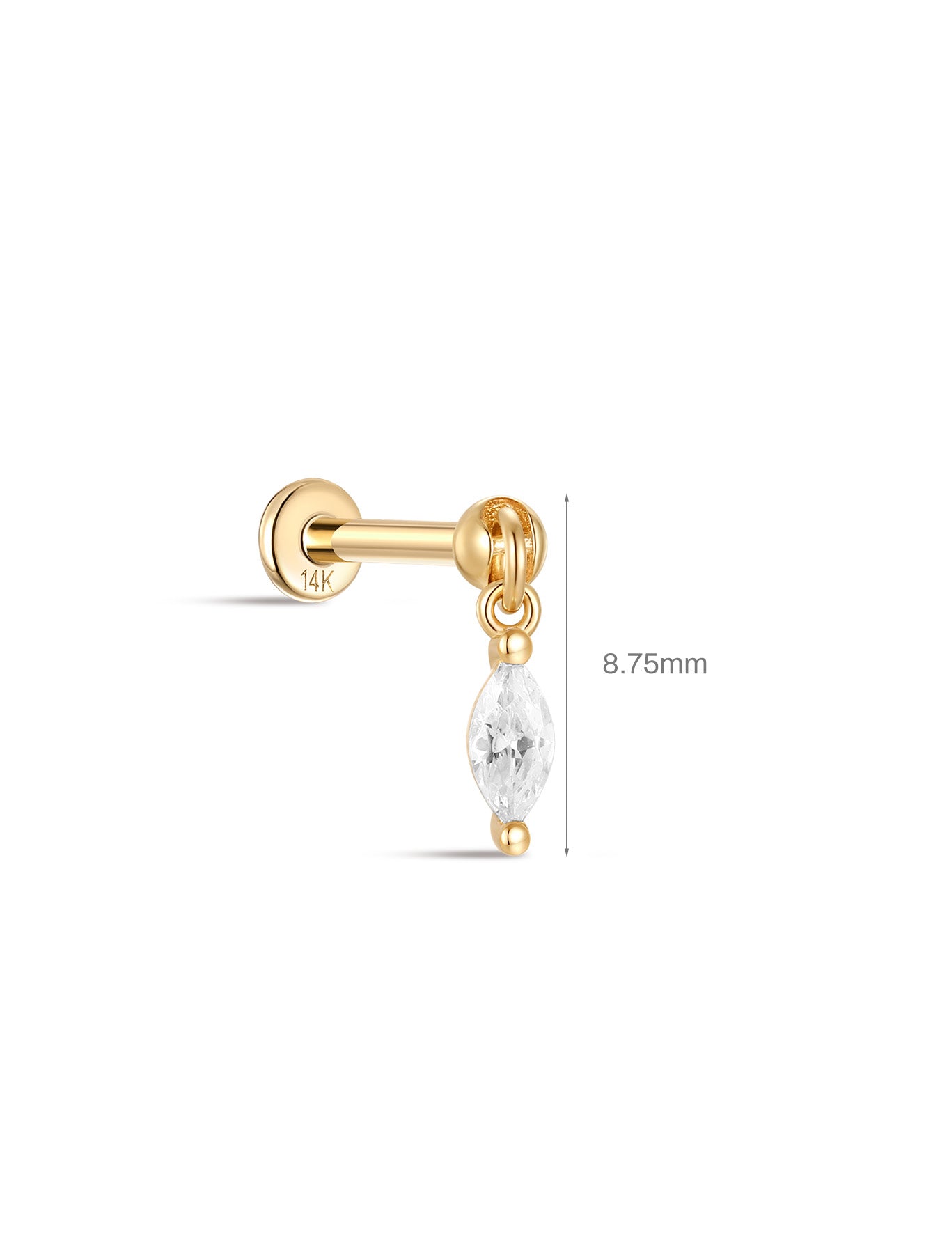 - Materiały: Top z 14-karatowego złota, słupek z 14-karatowego złota z płaskim tyłem