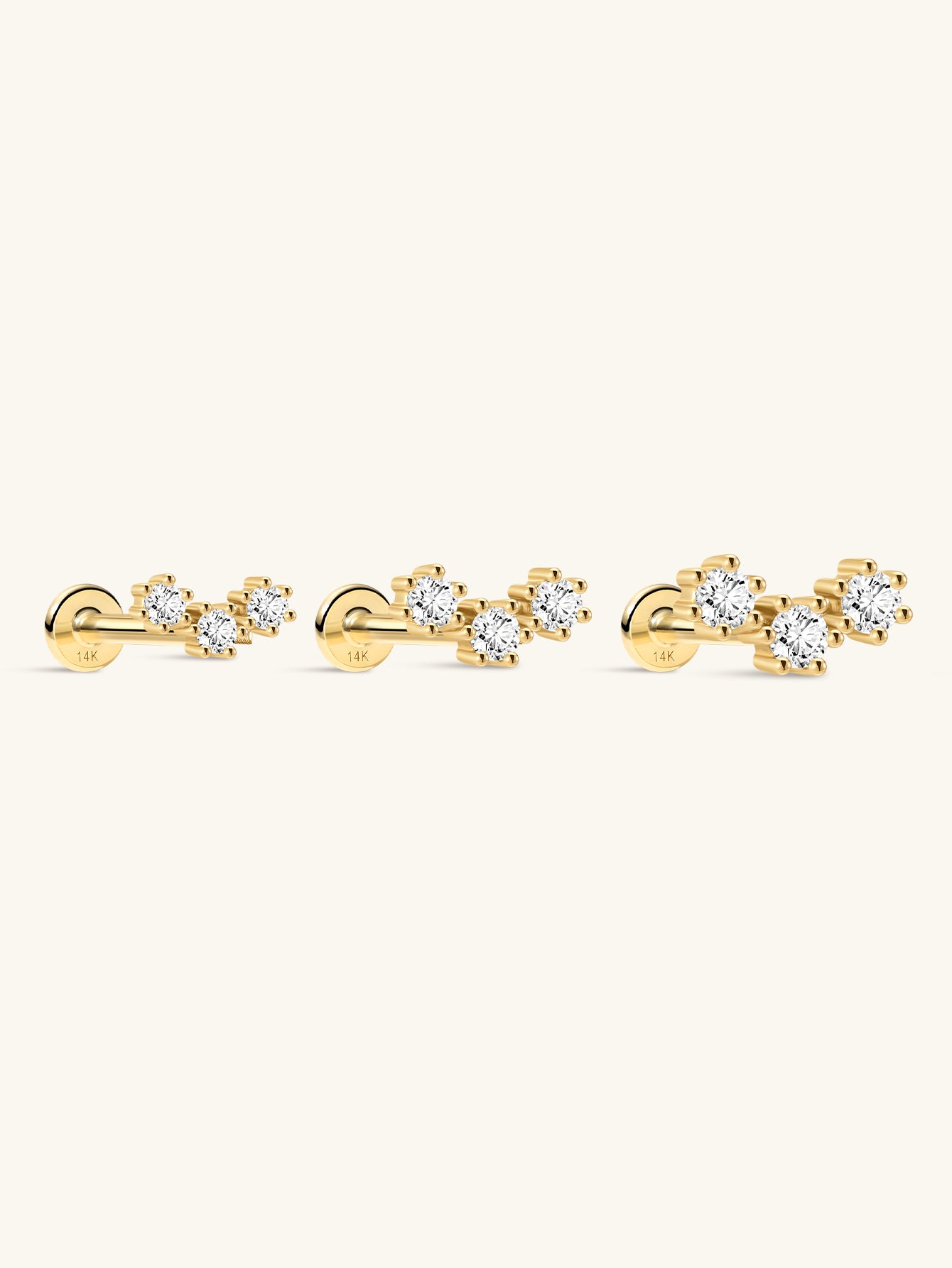 Kolczyk do przekłuwania uszu z 14-karatowego złota i cyrkonii