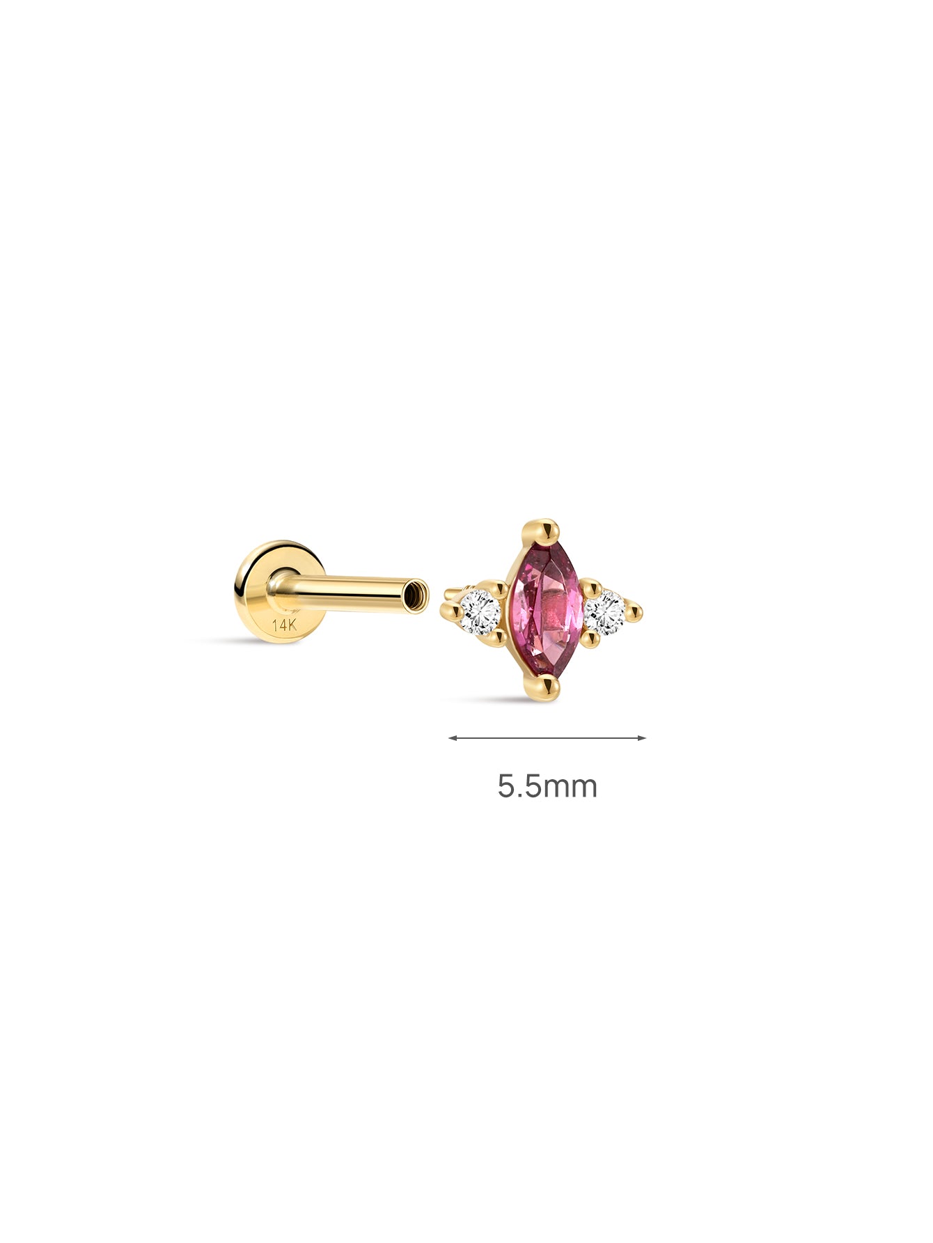 Crafted from genuine 14K solid gold, this flatback stud features a marquise-cut natural garnet, accented with clear zircon stones for a subtle yet striking look. Designed for comfortable, secure everyday wear with a smooth flatback post, perfect for curated ear stacks.