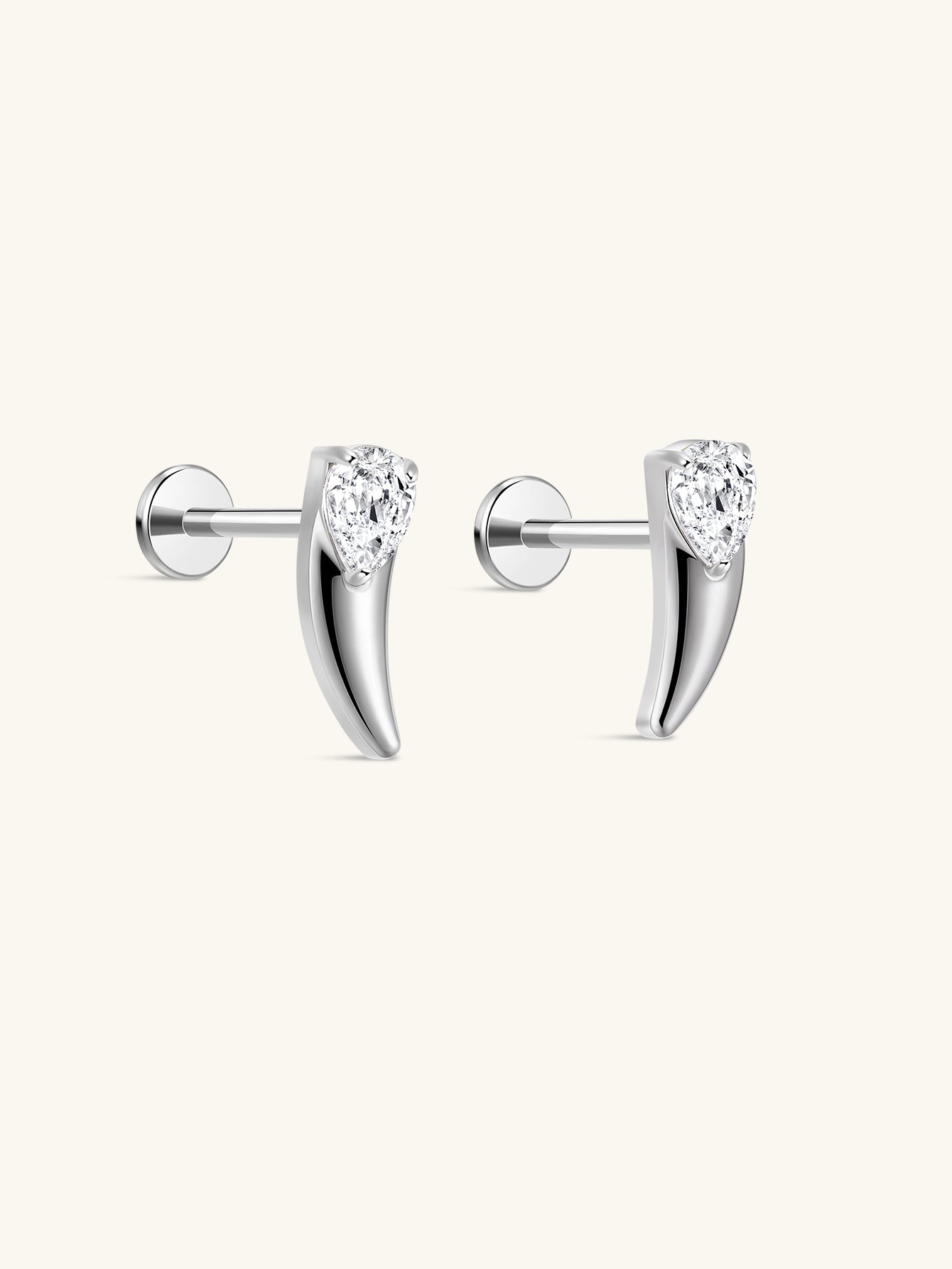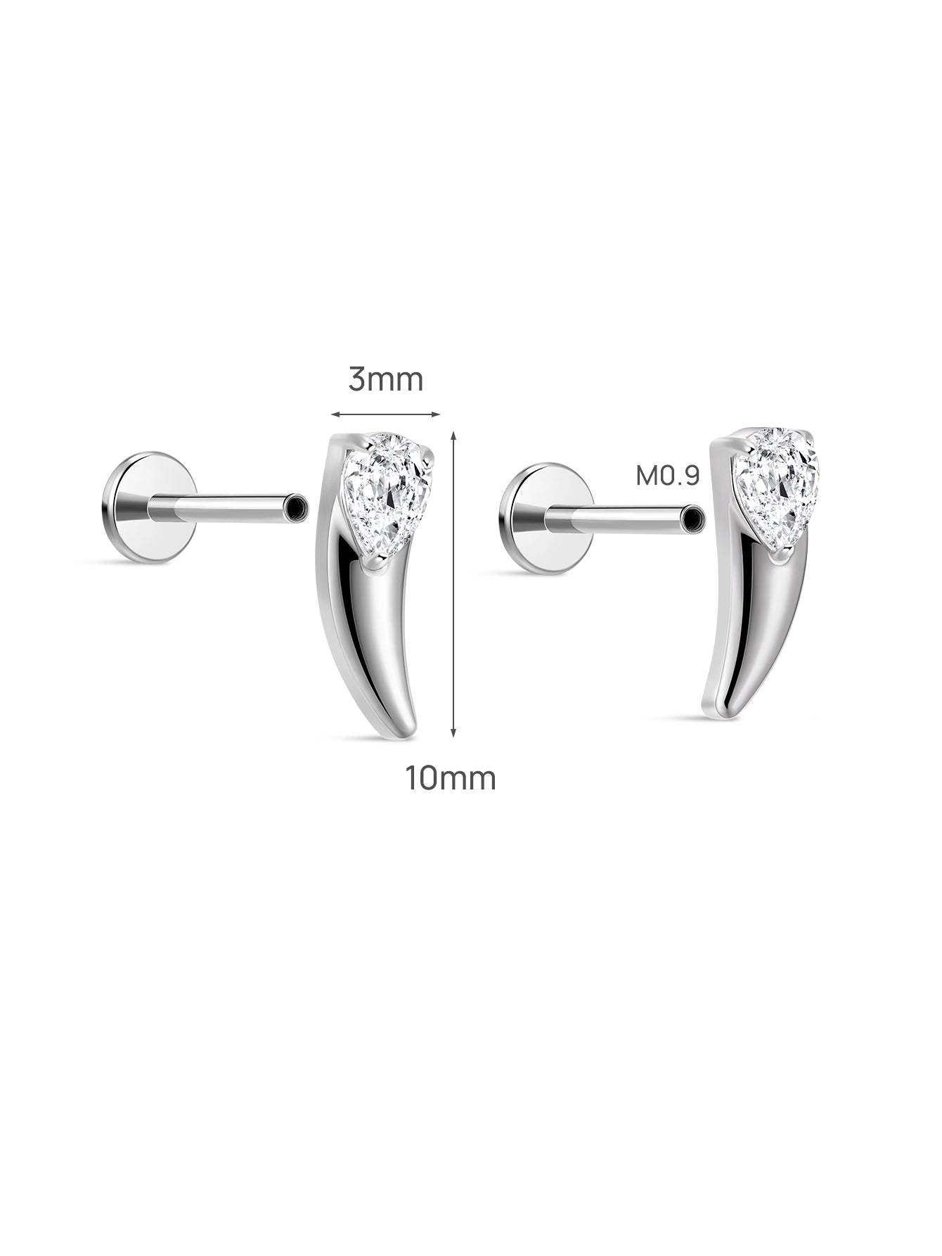 A sculptural fang-shaped flatback with a teardrop-cut white CZ for sharp, polished shine.Ideal for customizing piercing looks with a bold yet refined accent.