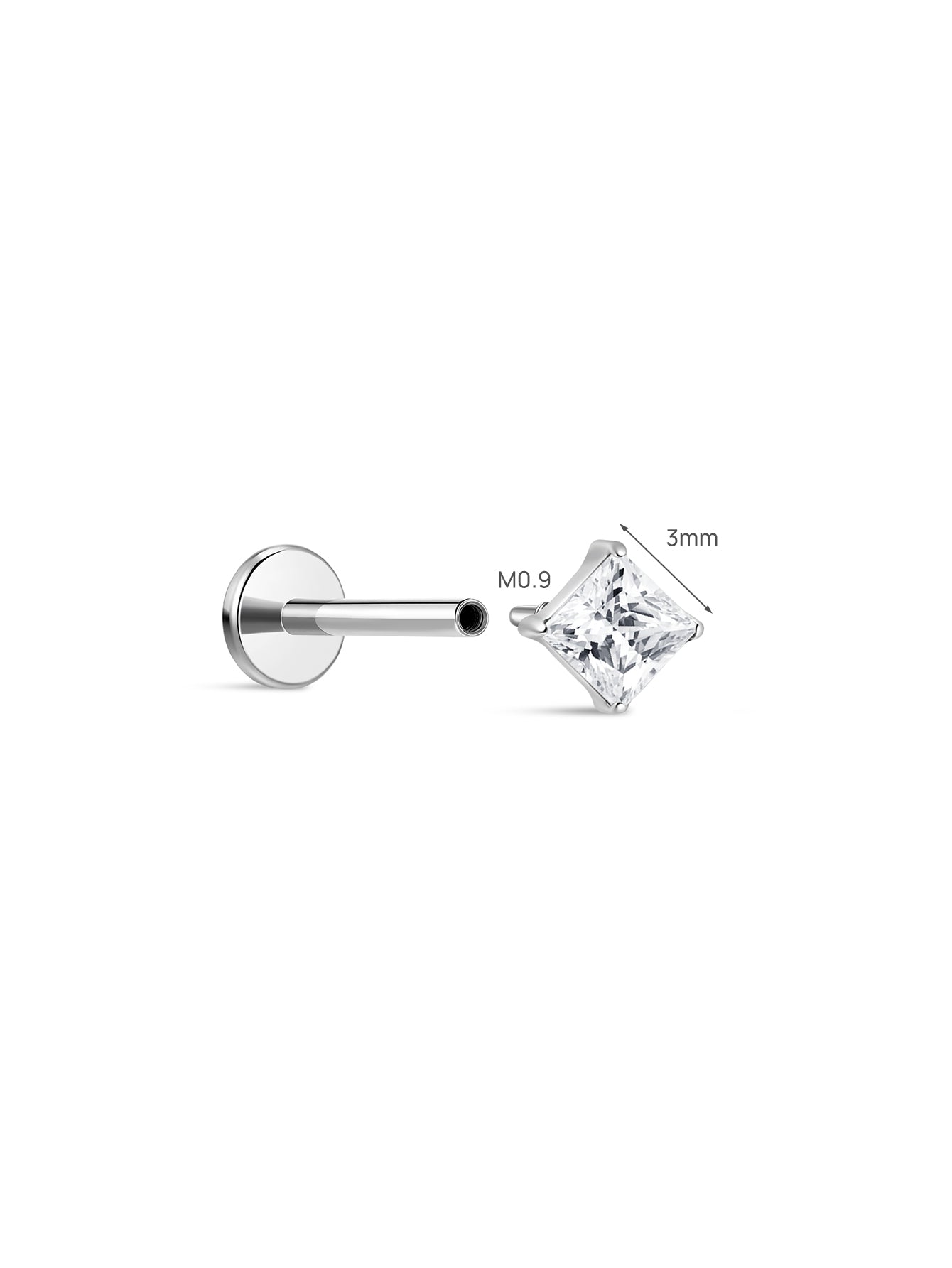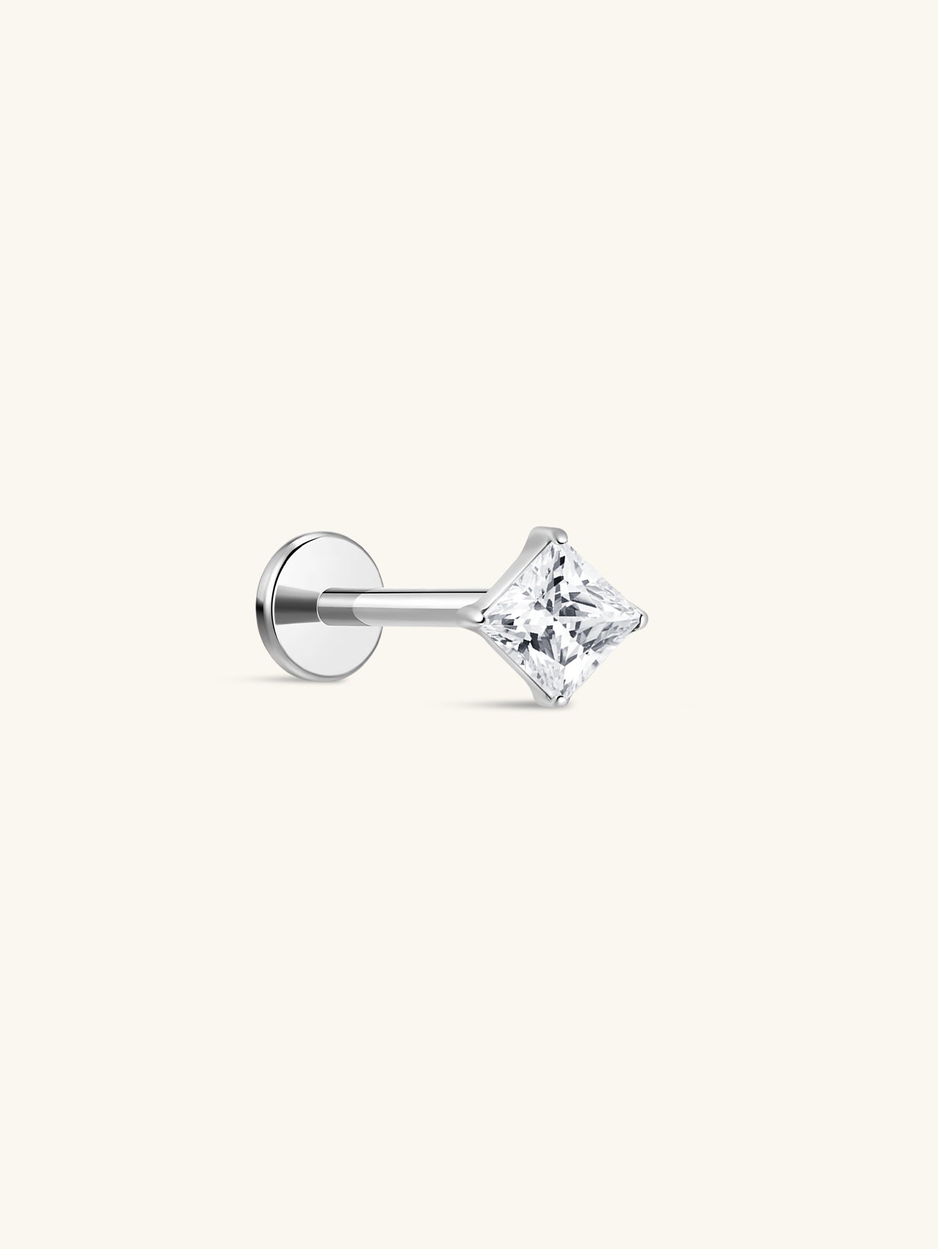 Square-cut CZ delivers a clean, high-clarity sparkle with a modern profile. Easy to mix and match across piercings.A minimal essential for everyday wear or refined piercing stacks.
