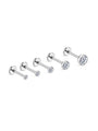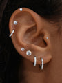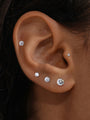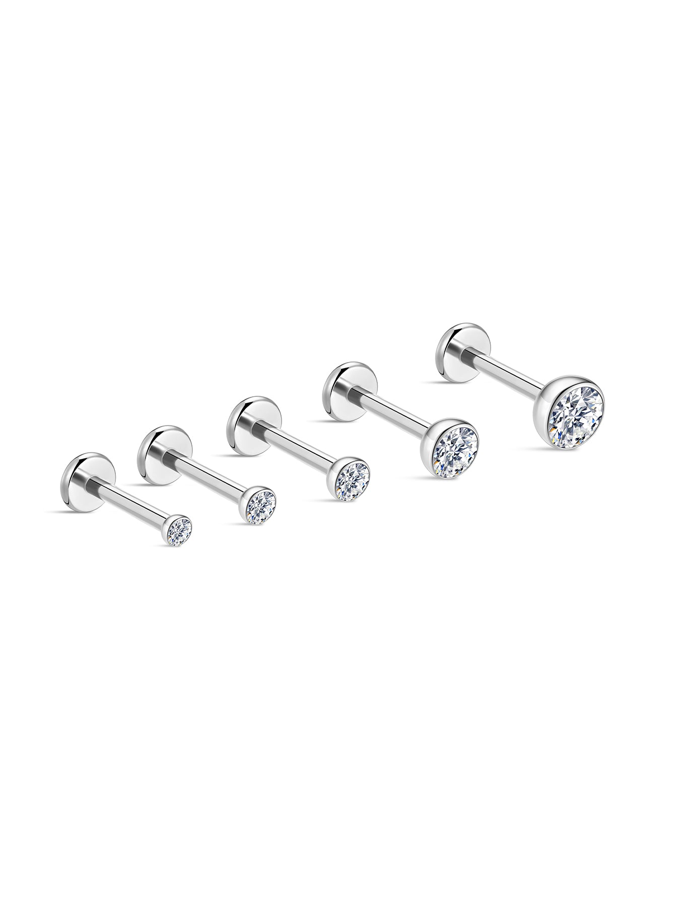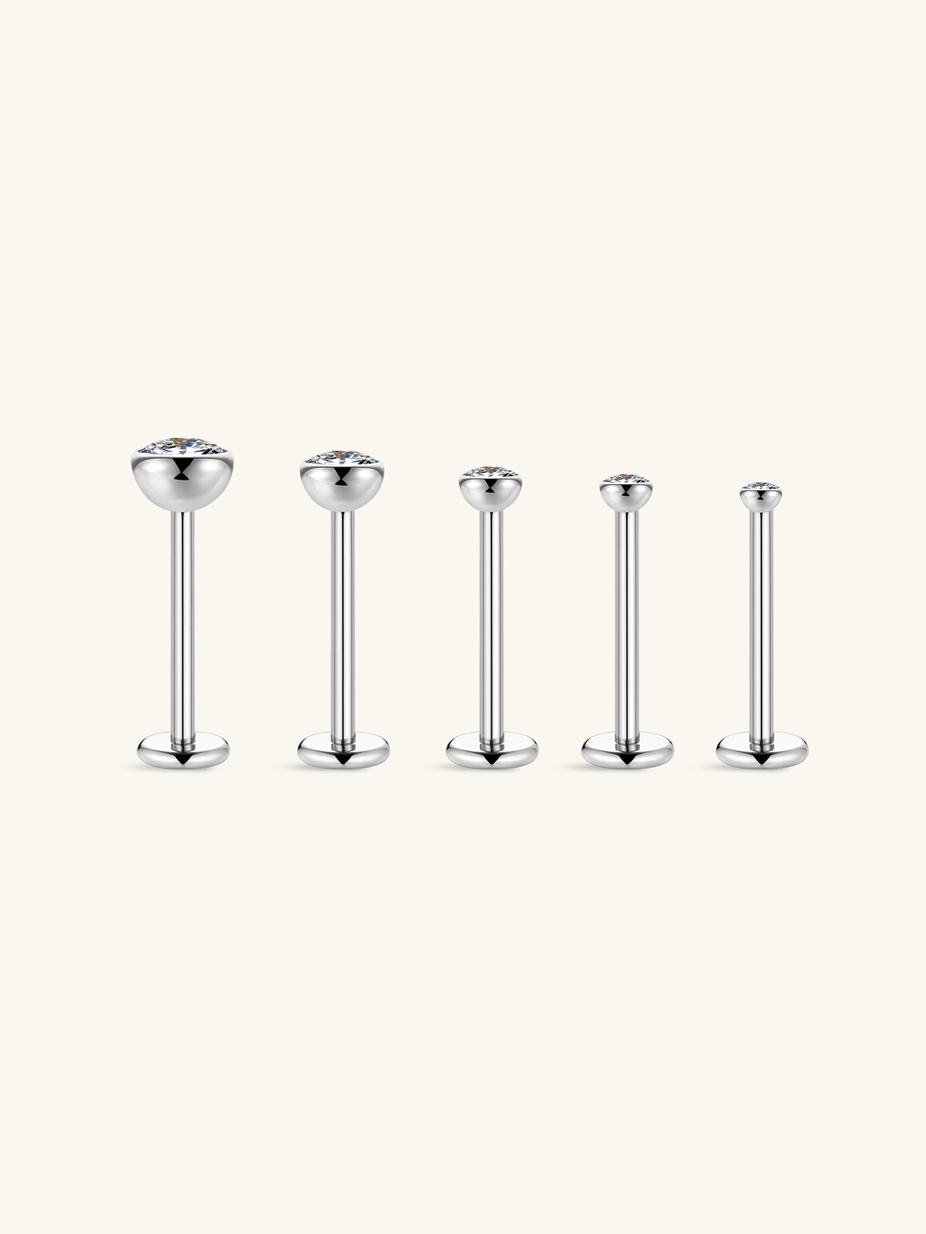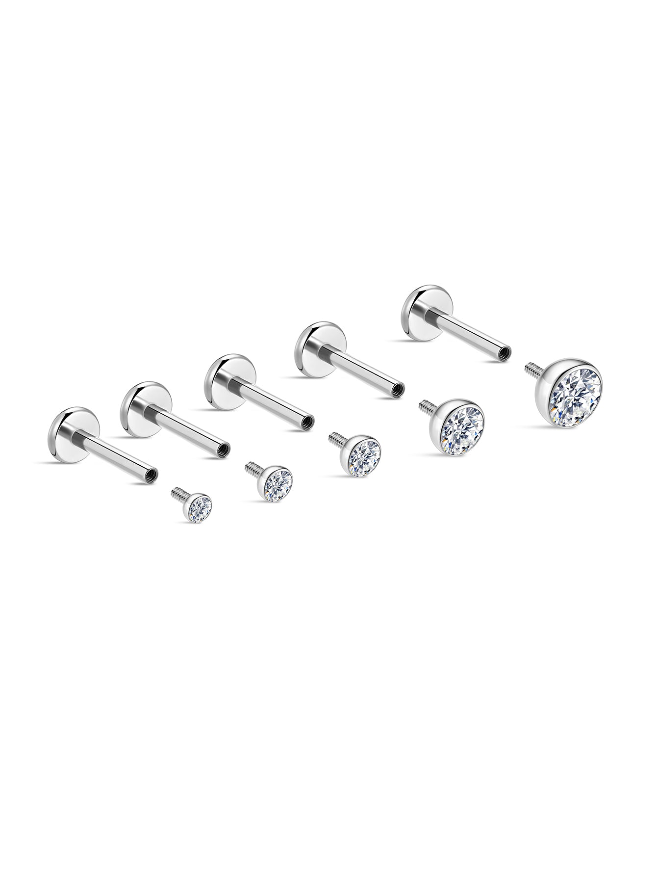 Polished titanium-tone stud set with clear CZ for a clean, minimal sparkle. Lightweight and versatile, ideal for ear, cartilage, and curated piercing setups.