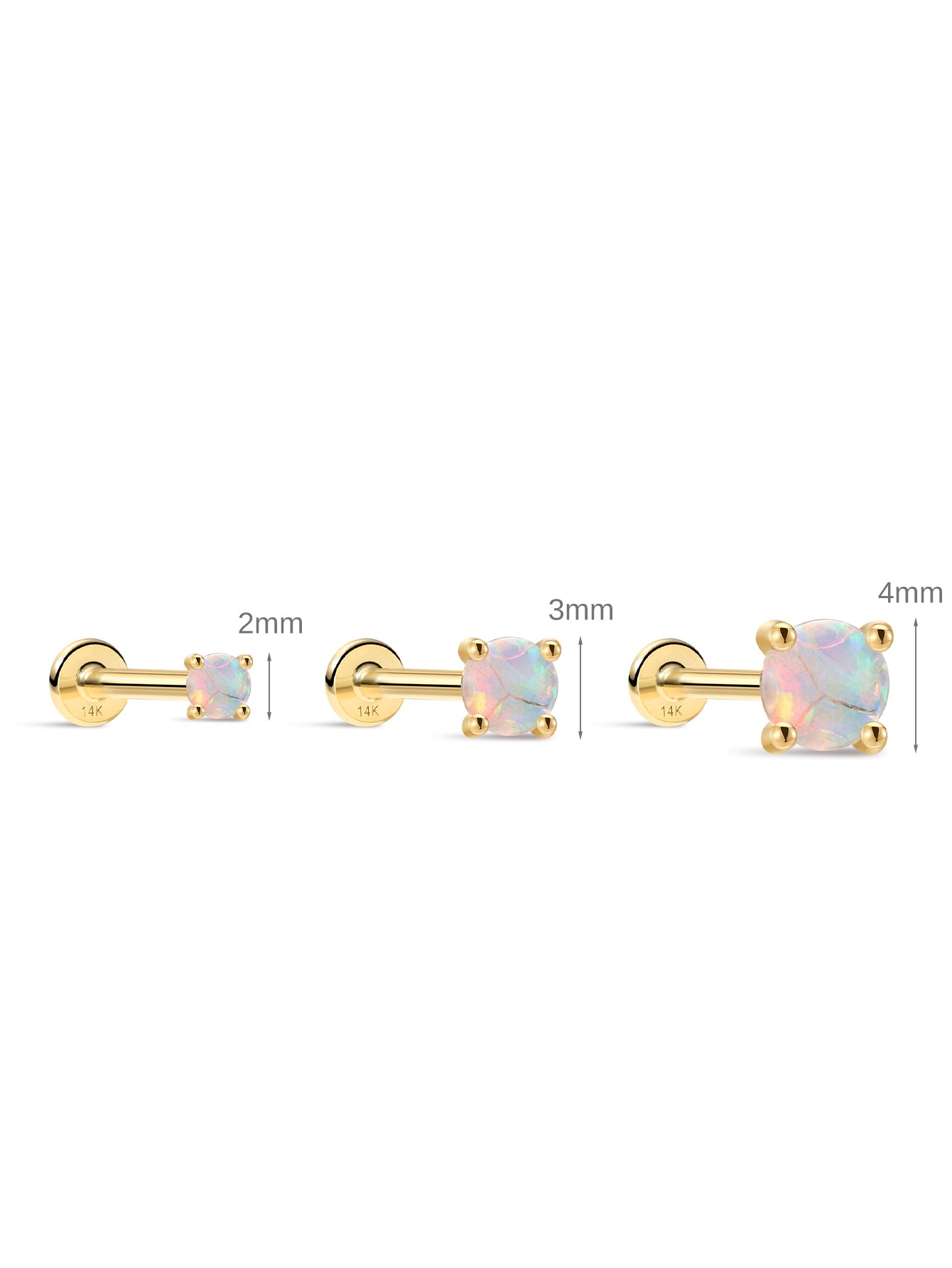 This classic piercing stud features a luminous opal set in a solid 14K gold top for a clean, elevated look. Choose your opal size to match your style, then select your post option — including a titanium flatback post that’s durable, skin-friendly, and a smart value upgrade, while keeping the 14K gold front as the star of the piece.