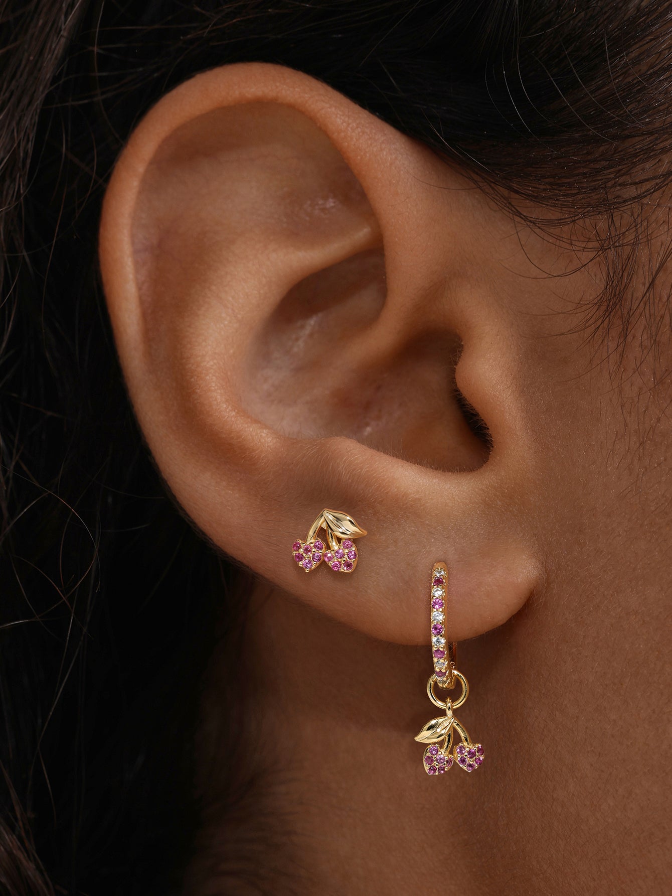Wear it solo for a refined pop of color, or pair it with minimalist gold studs and slim hoops to build a balanced fruit-inspired ear stack. The compact silhouette makes it ideal as a focal accent in curated multi-piercing styling.