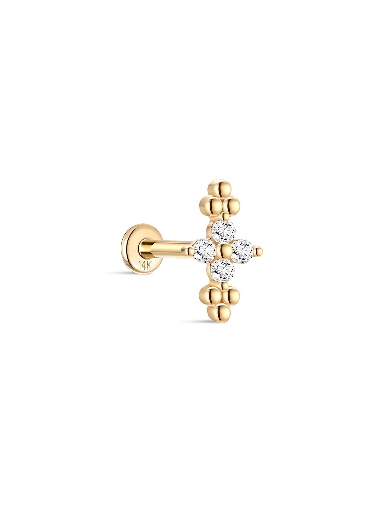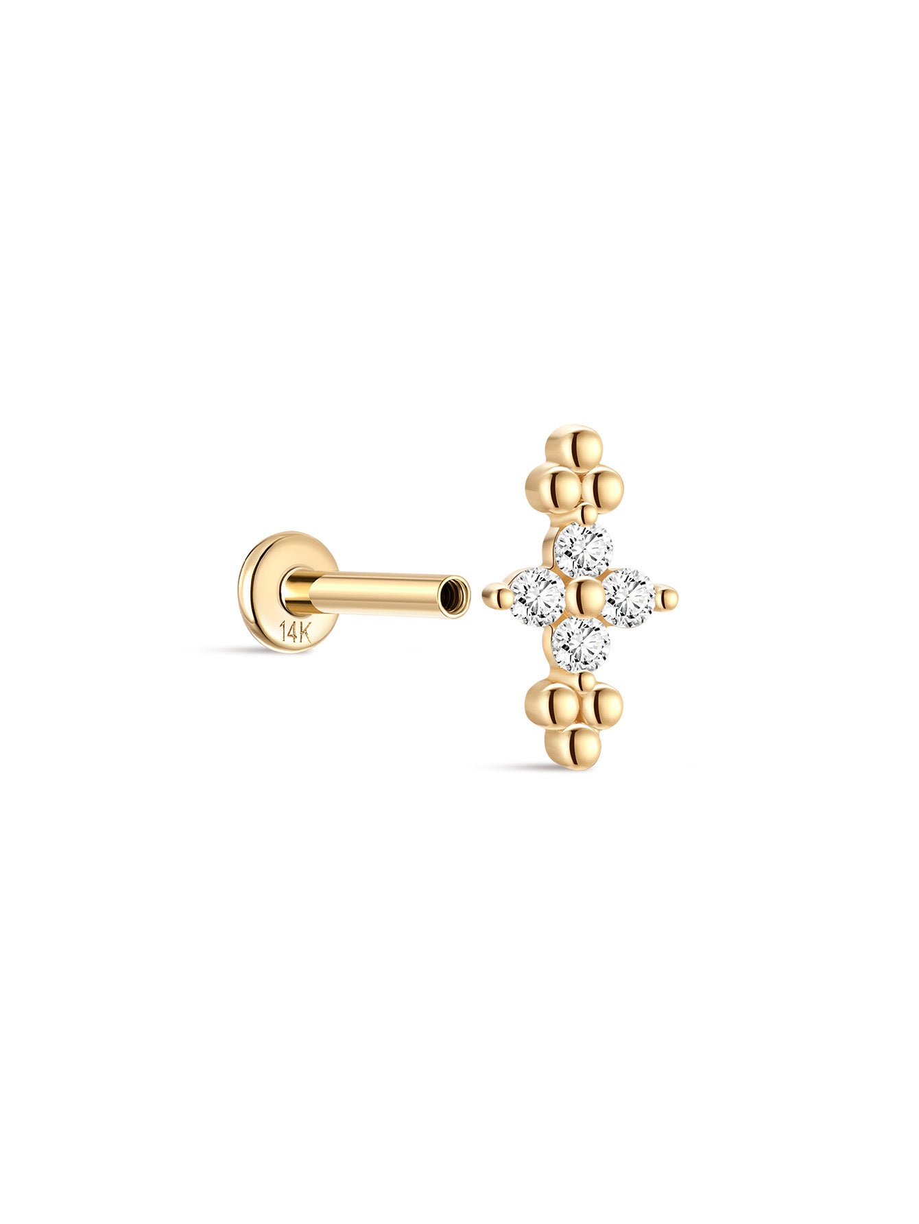 14K Solid Gold Beaded Four-Leaf Flower Ear Piercing Stud