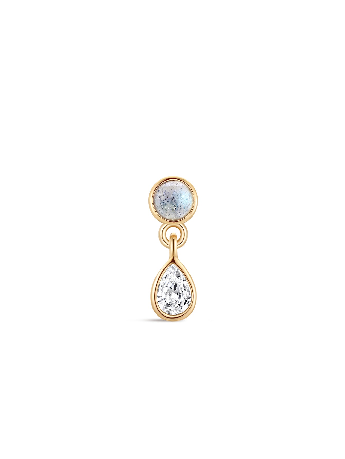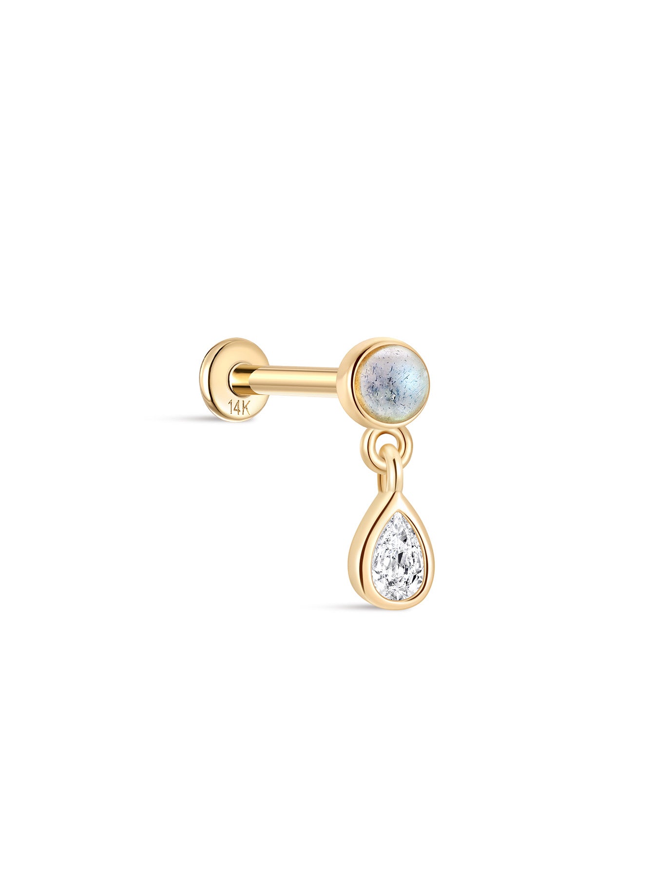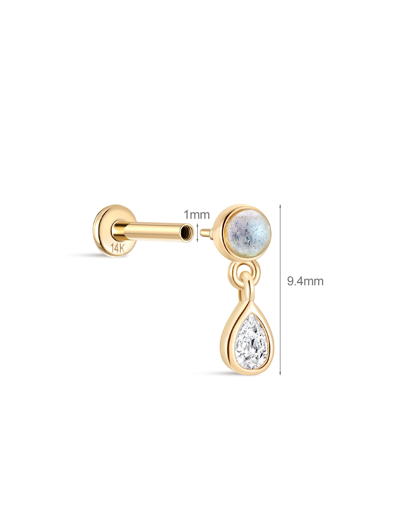 14K Solid Gold Bezel Pear Dangle Moonstone Flatback Stud