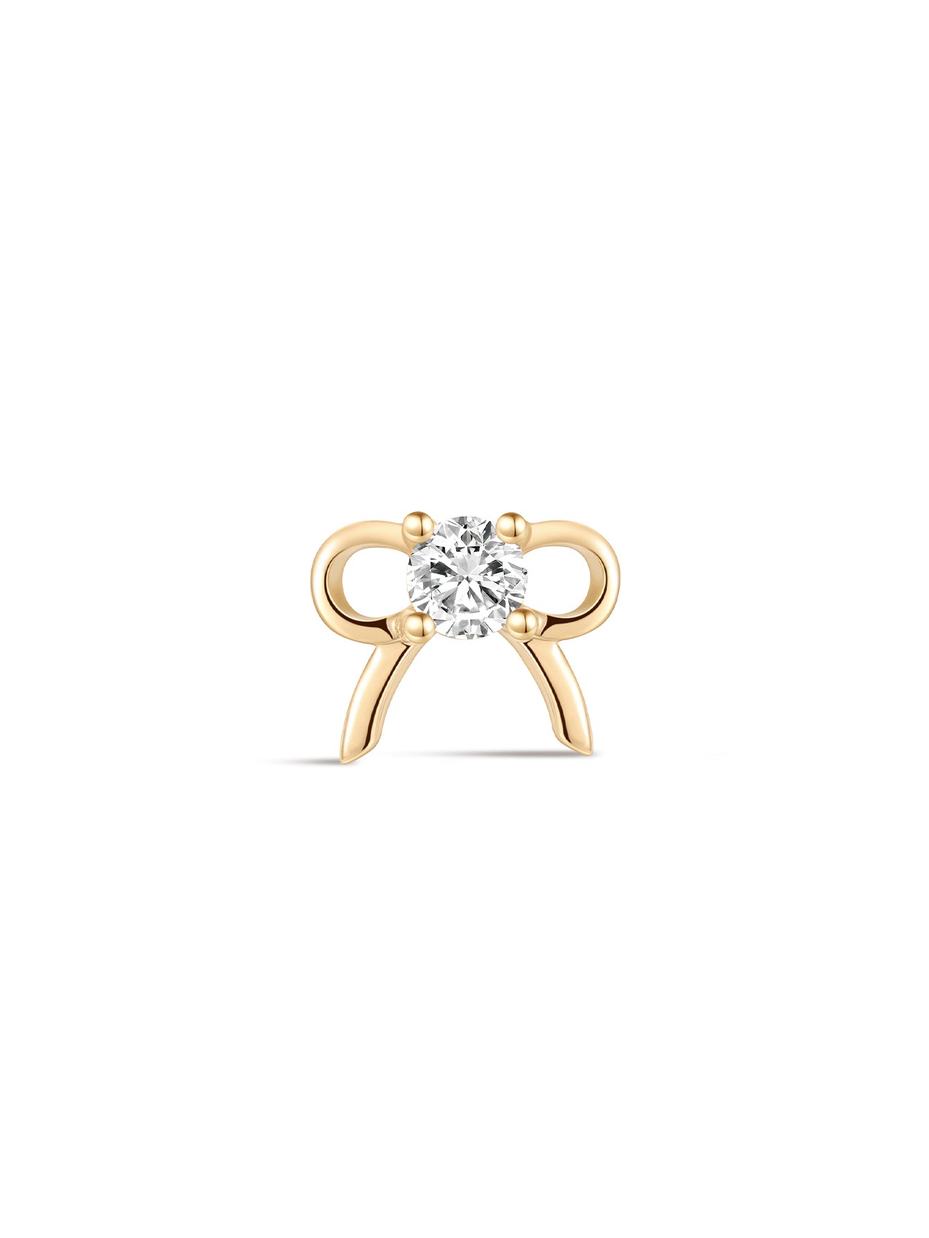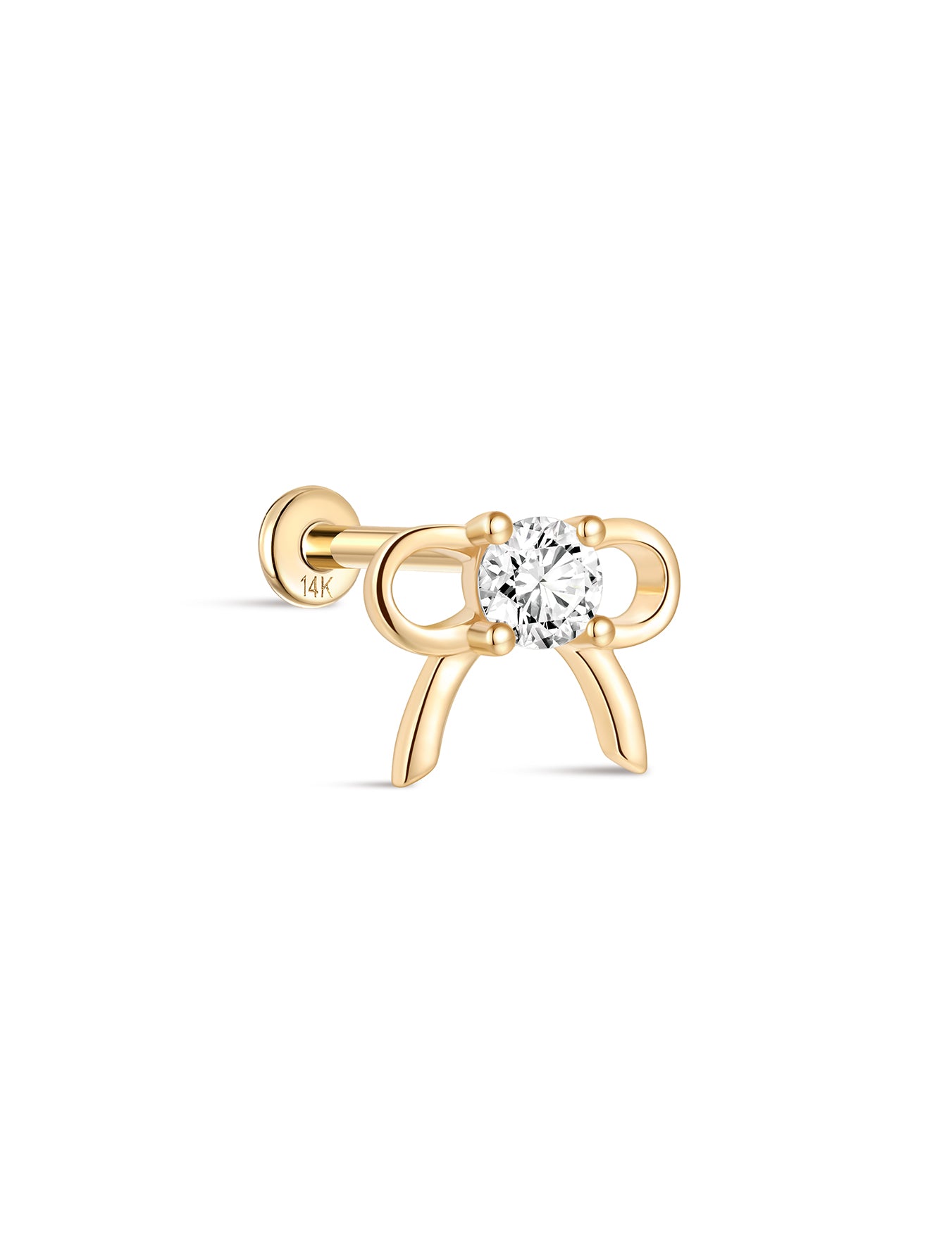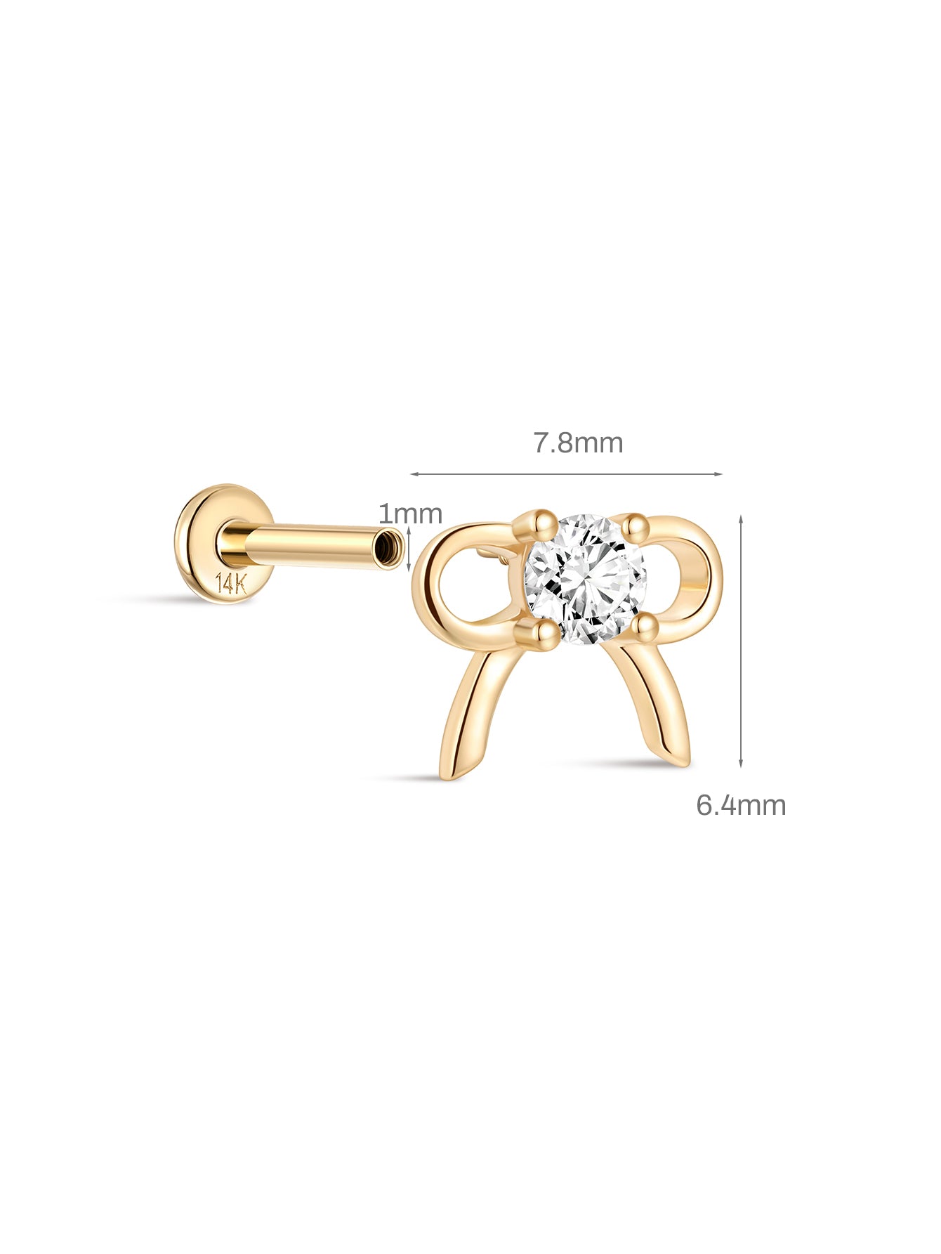 14k Solid Gold Bow Four-Claw Flat Head Ear Piercing Stud