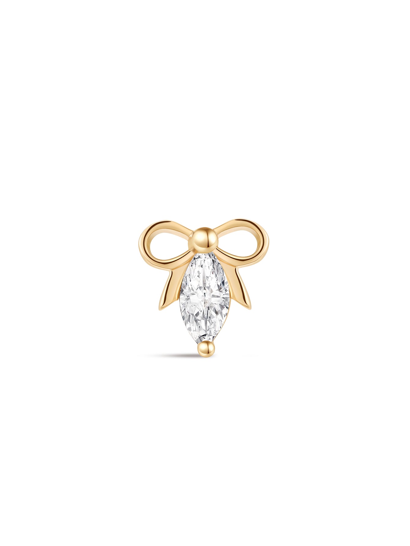 14k Solid Gold Bowknot Flat Head Ear Piercing Stud
