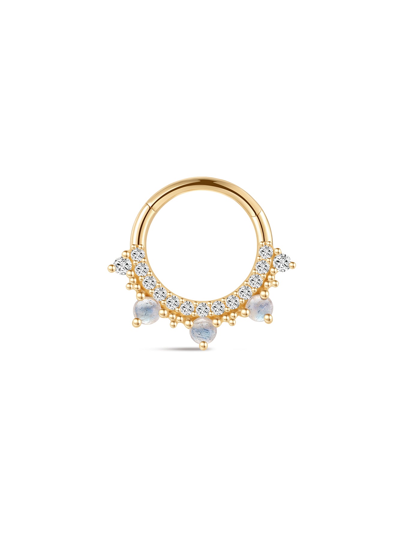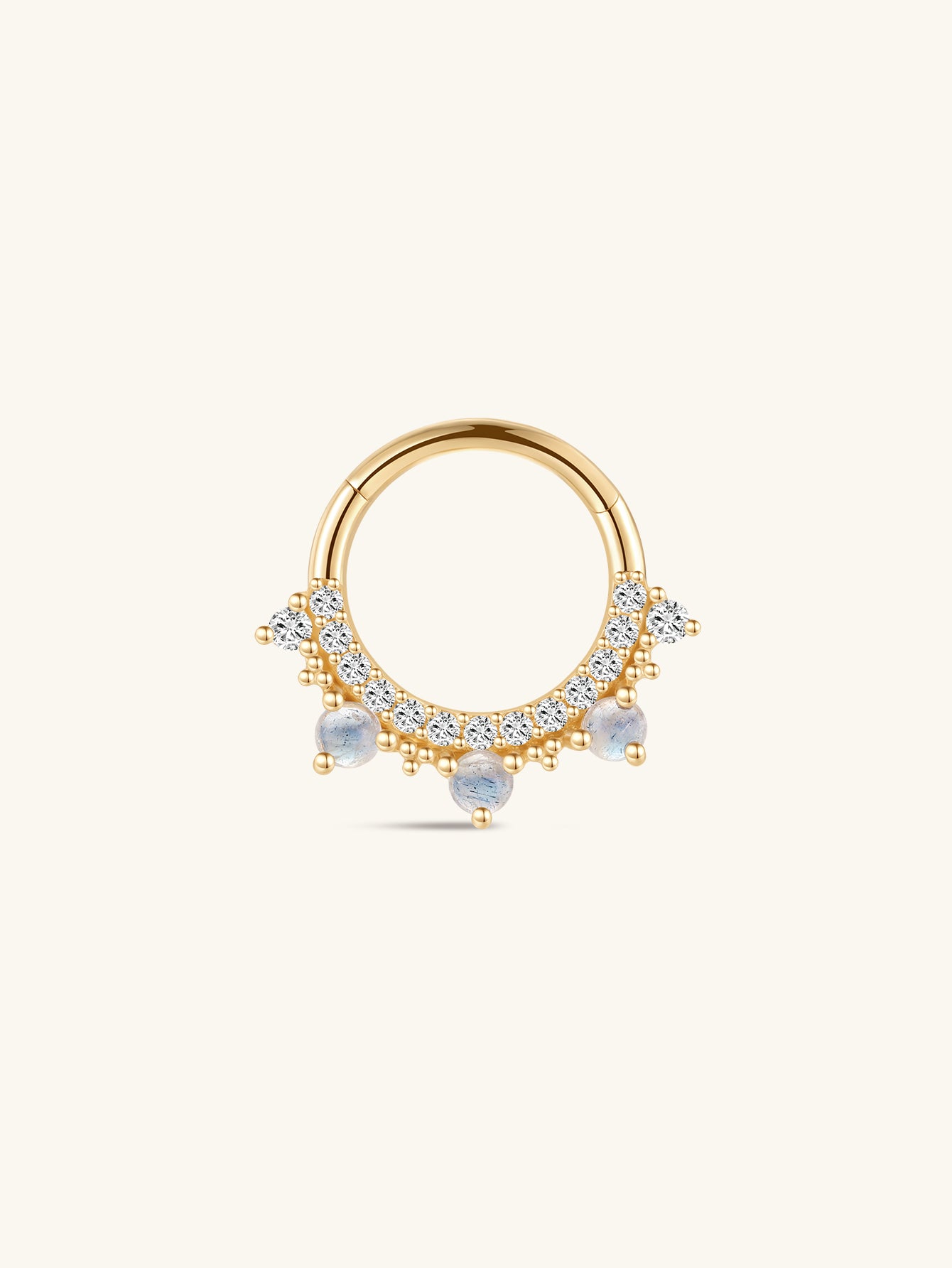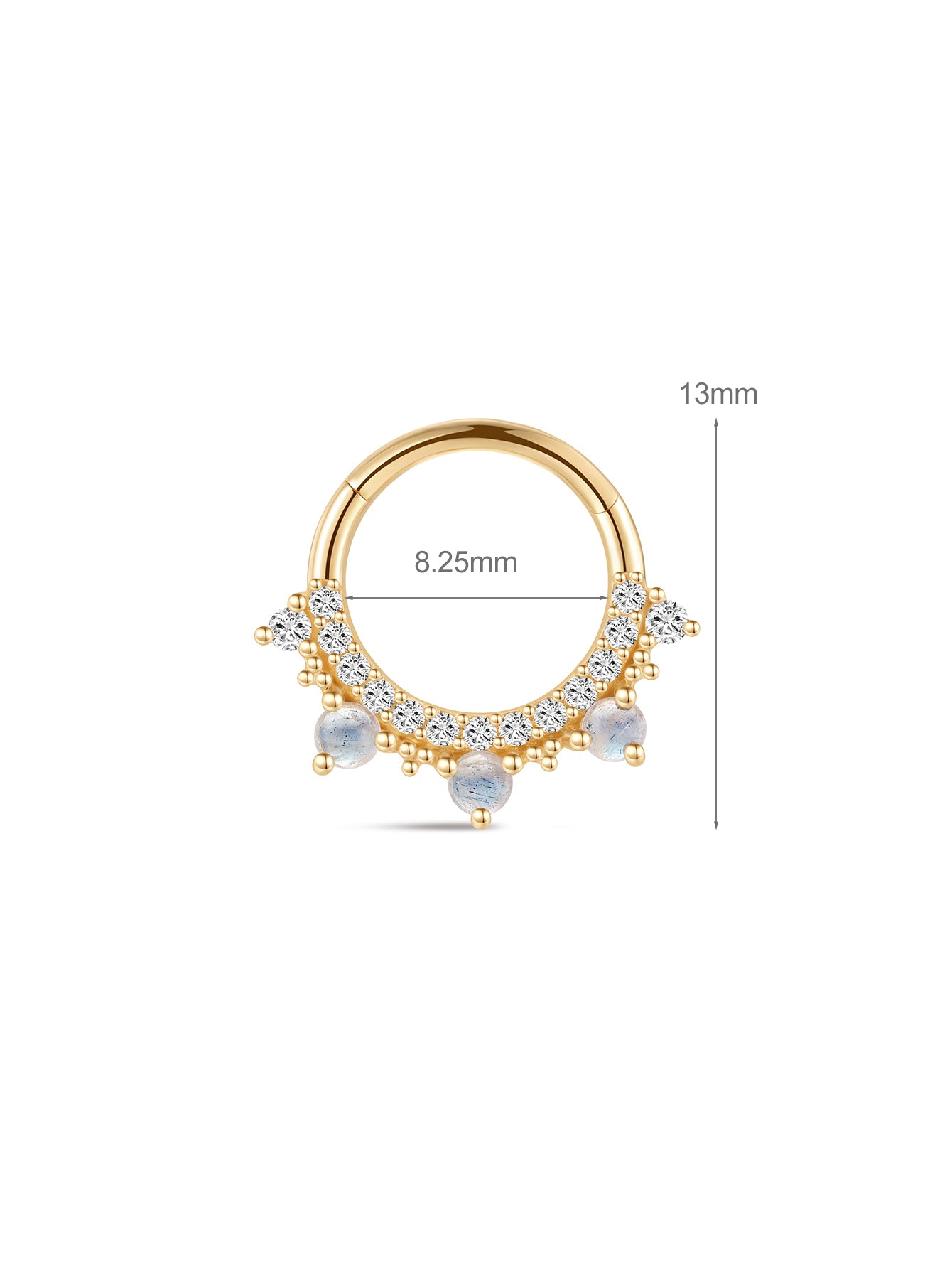 14K Solid Gold Classic Moonstone Cartilage Hoop Earring
