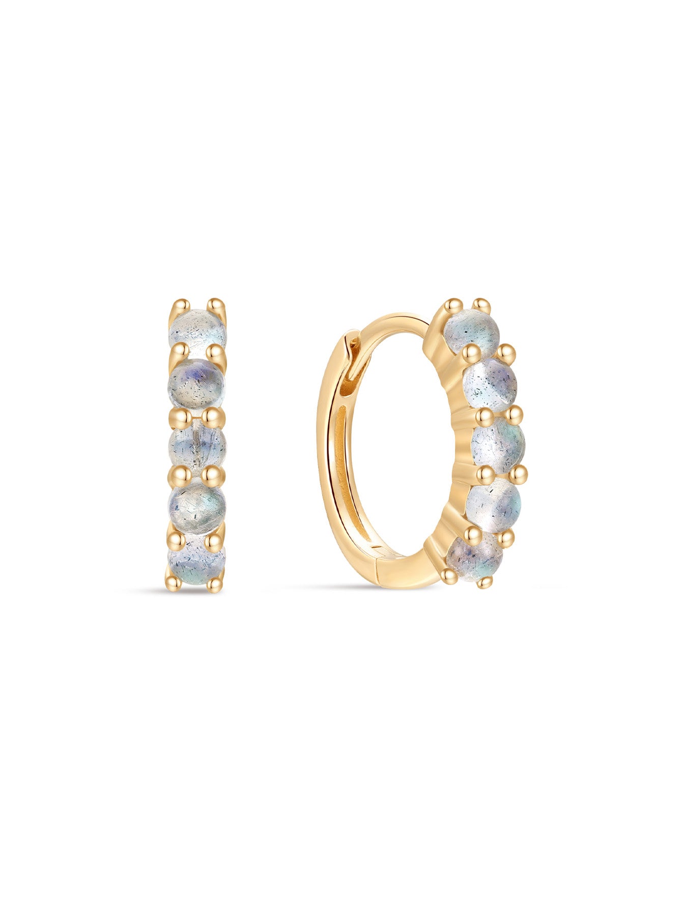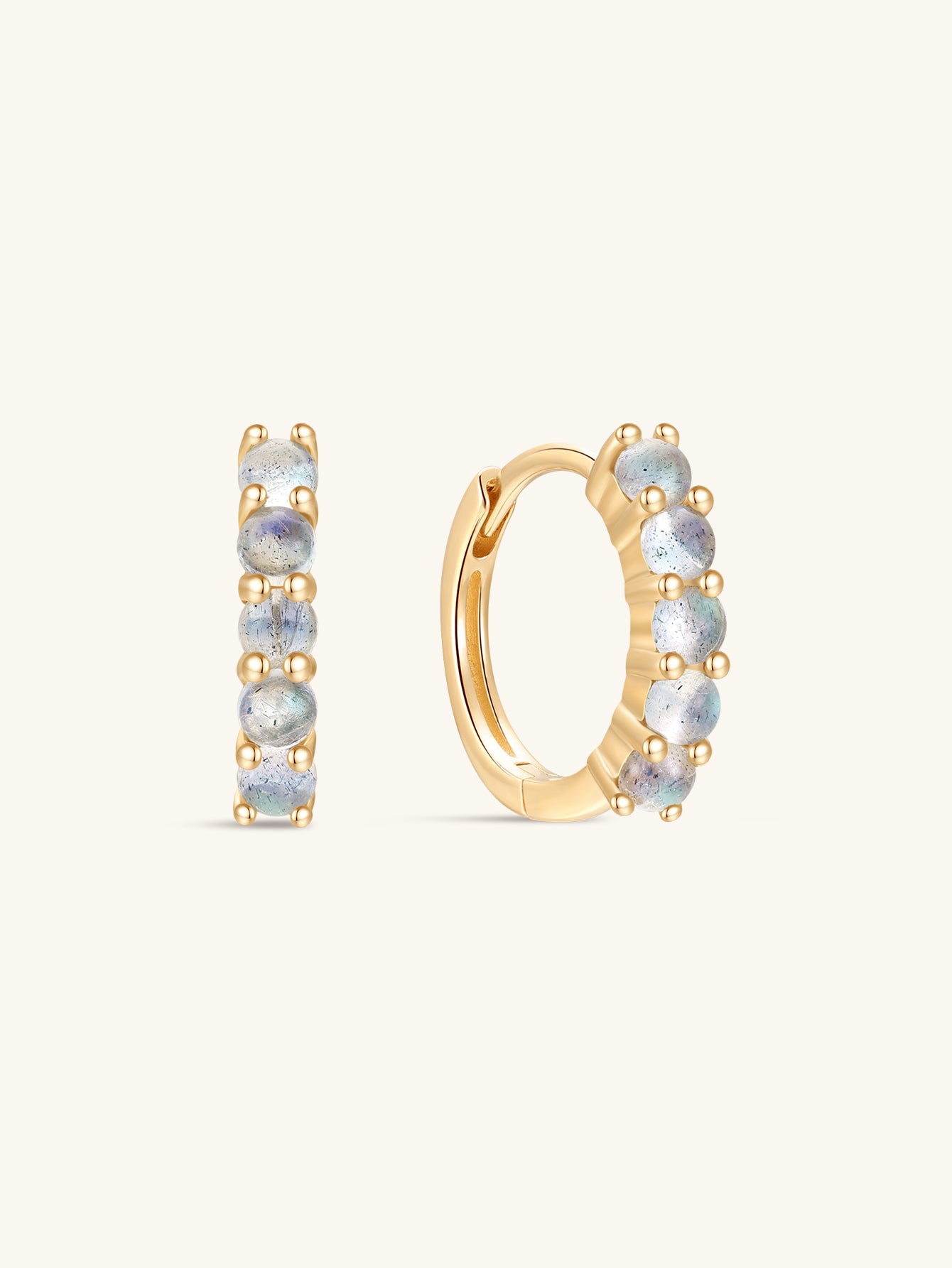 14K Solid Gold Classic Moonstone Hoop Earring