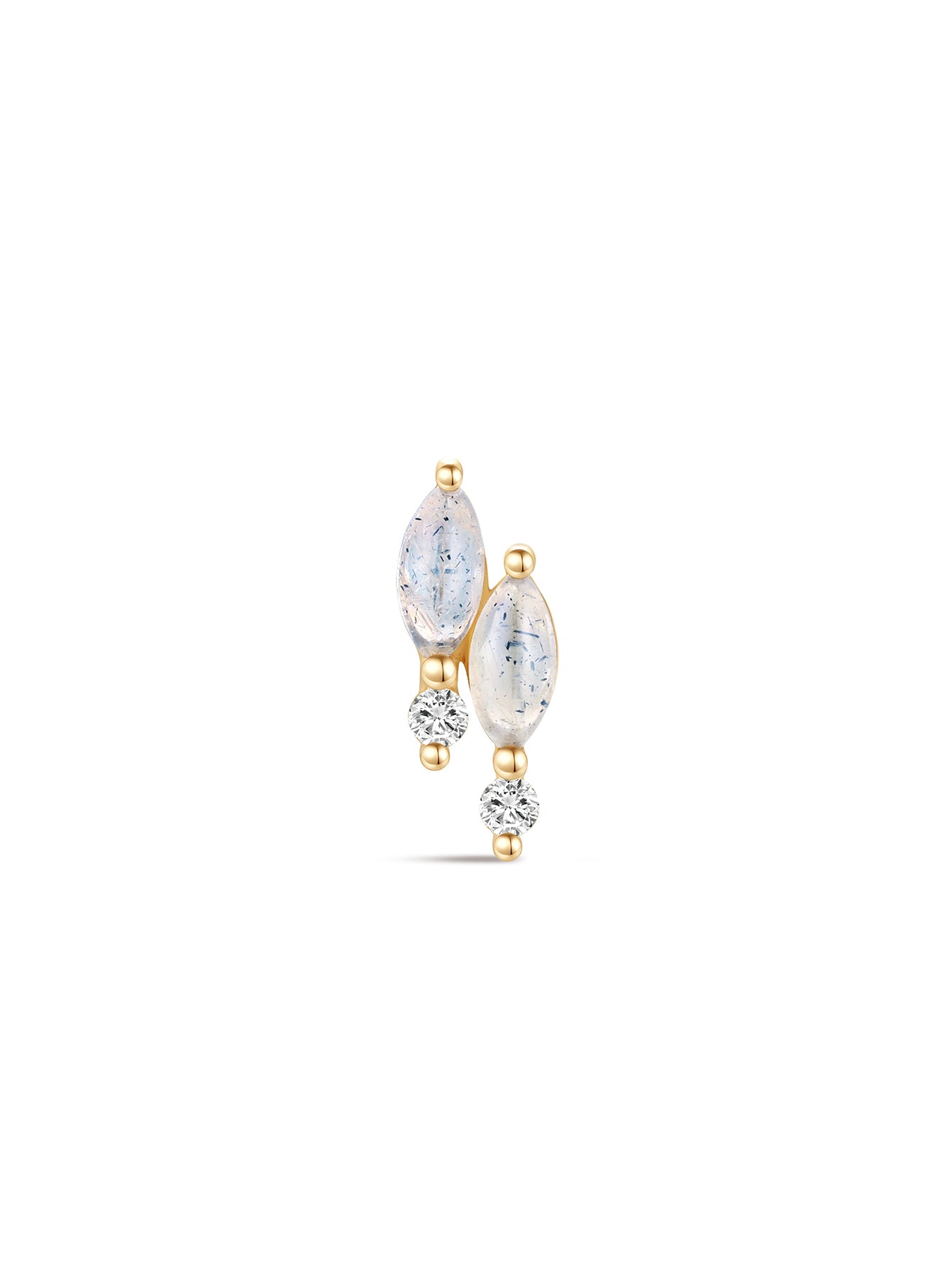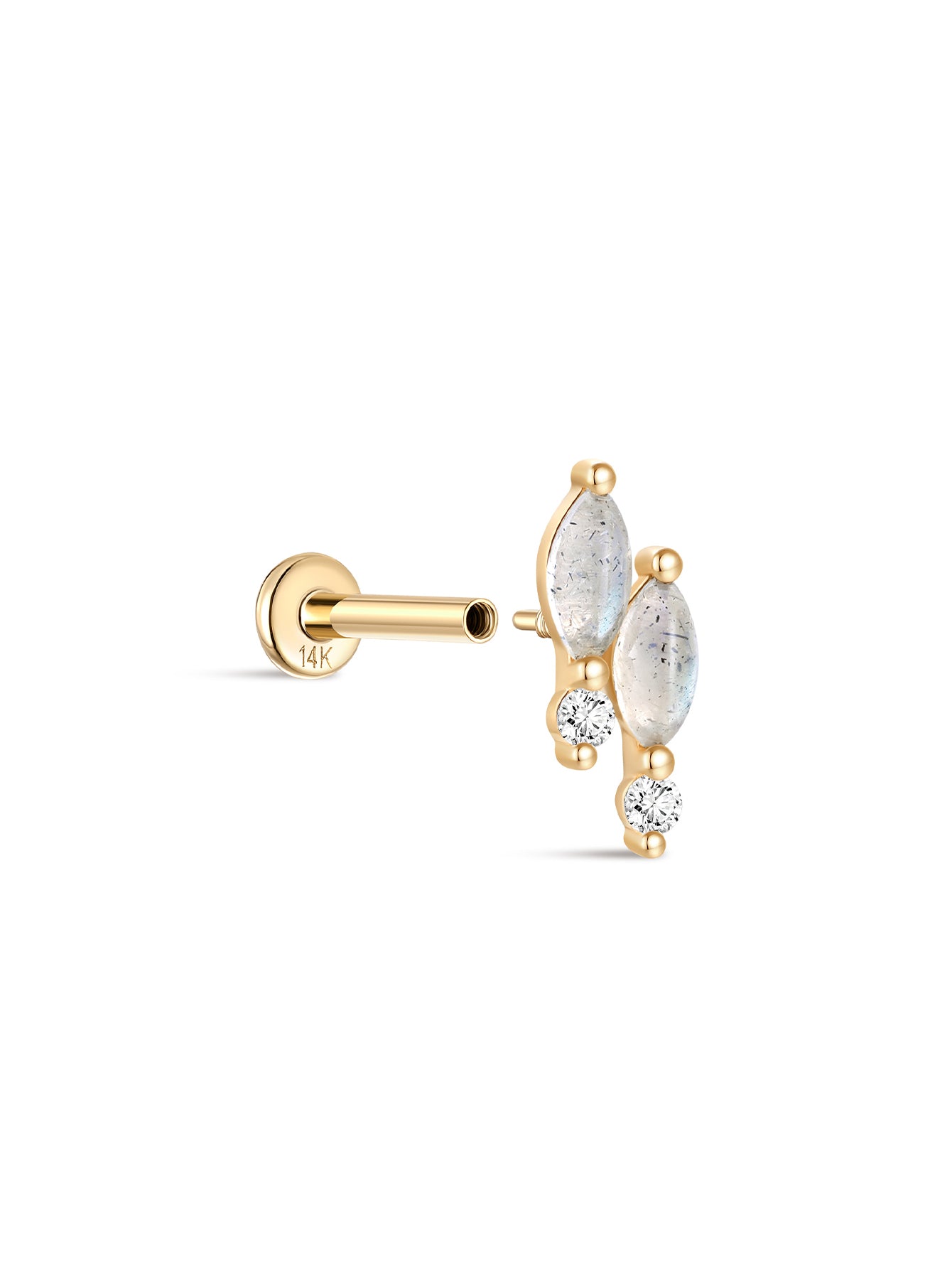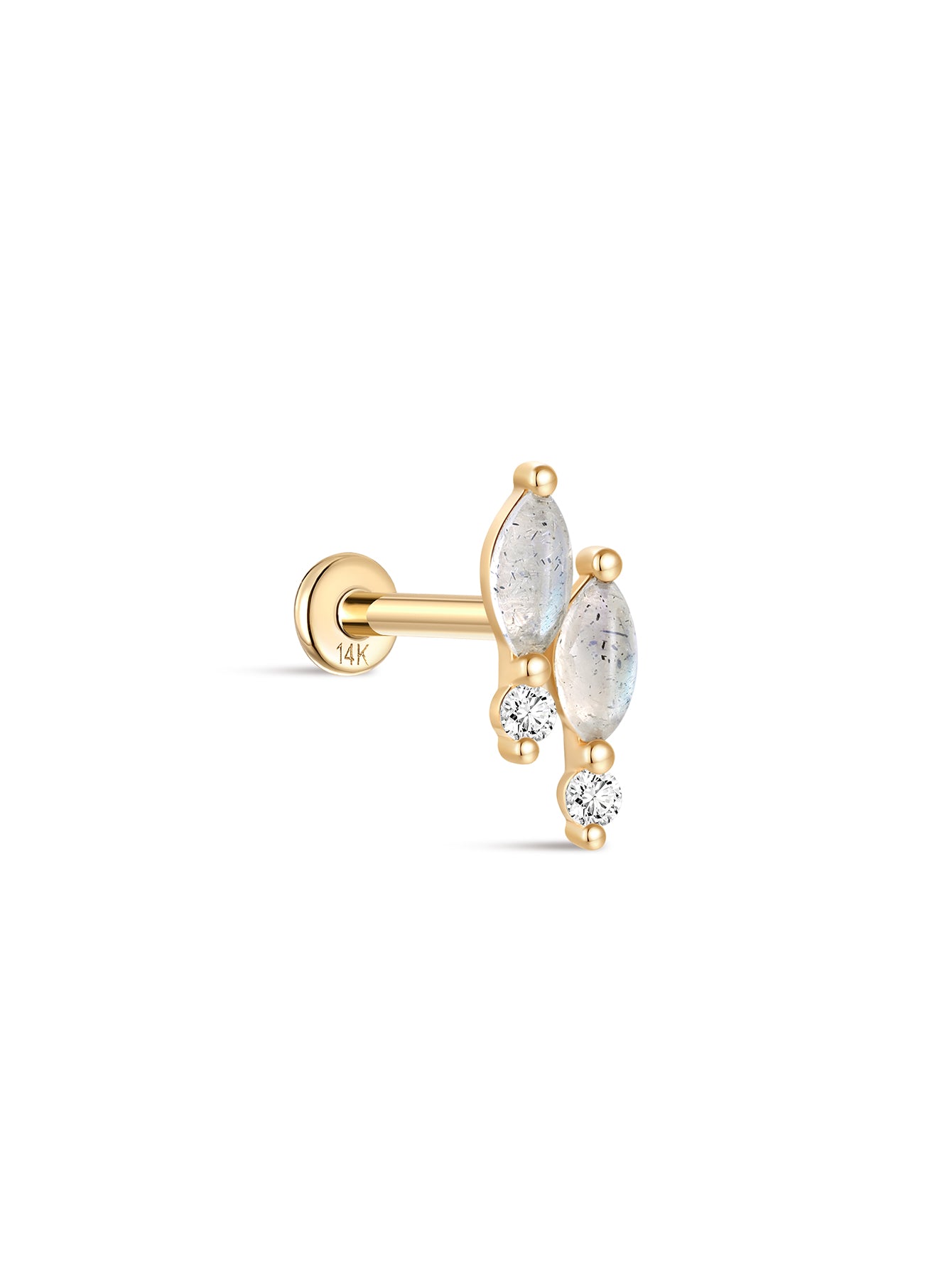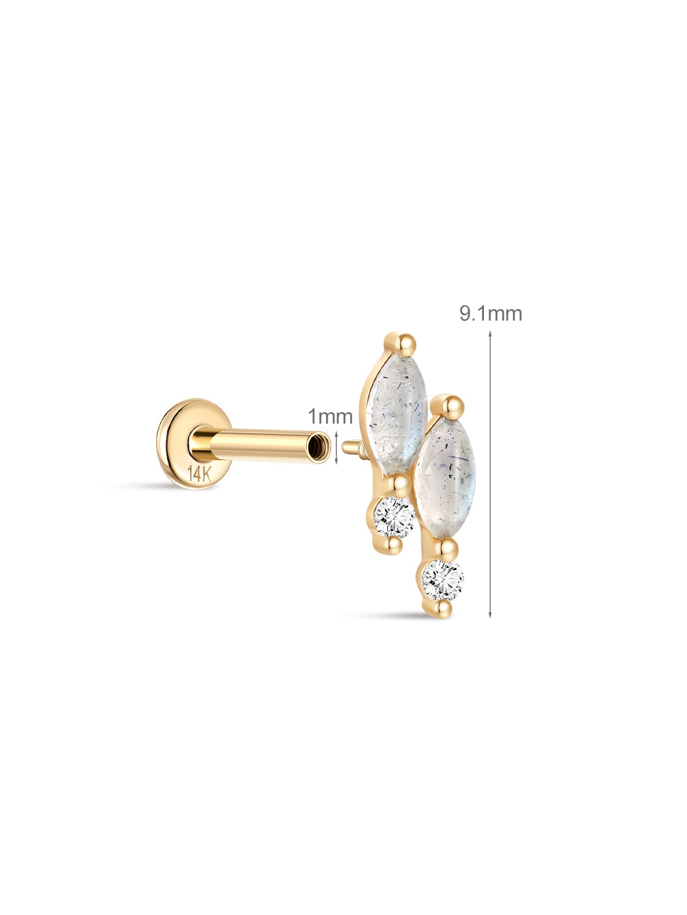 14K Solid Gold Double Horse Eye Moonstone Flatback Stud