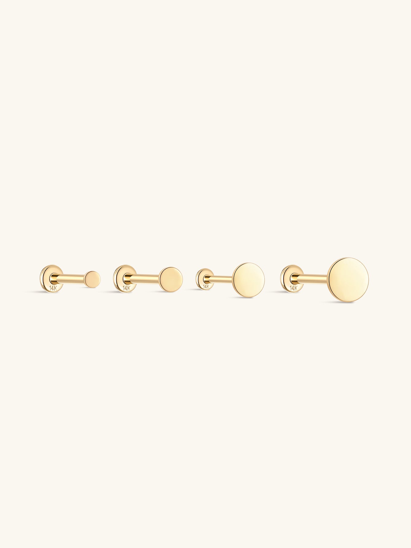 14K Solid Gold Flat Disc Threaded Ear Piercing Stud