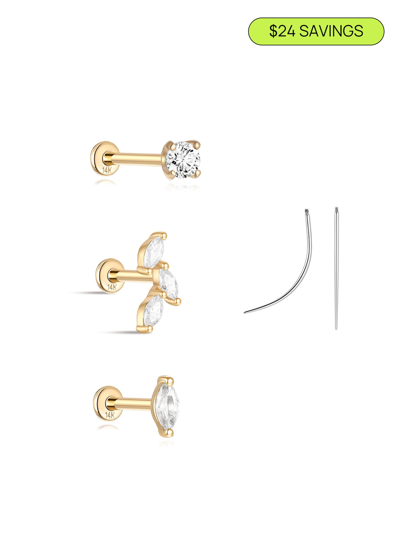 14K Solid Gold Flatback Marquise Set