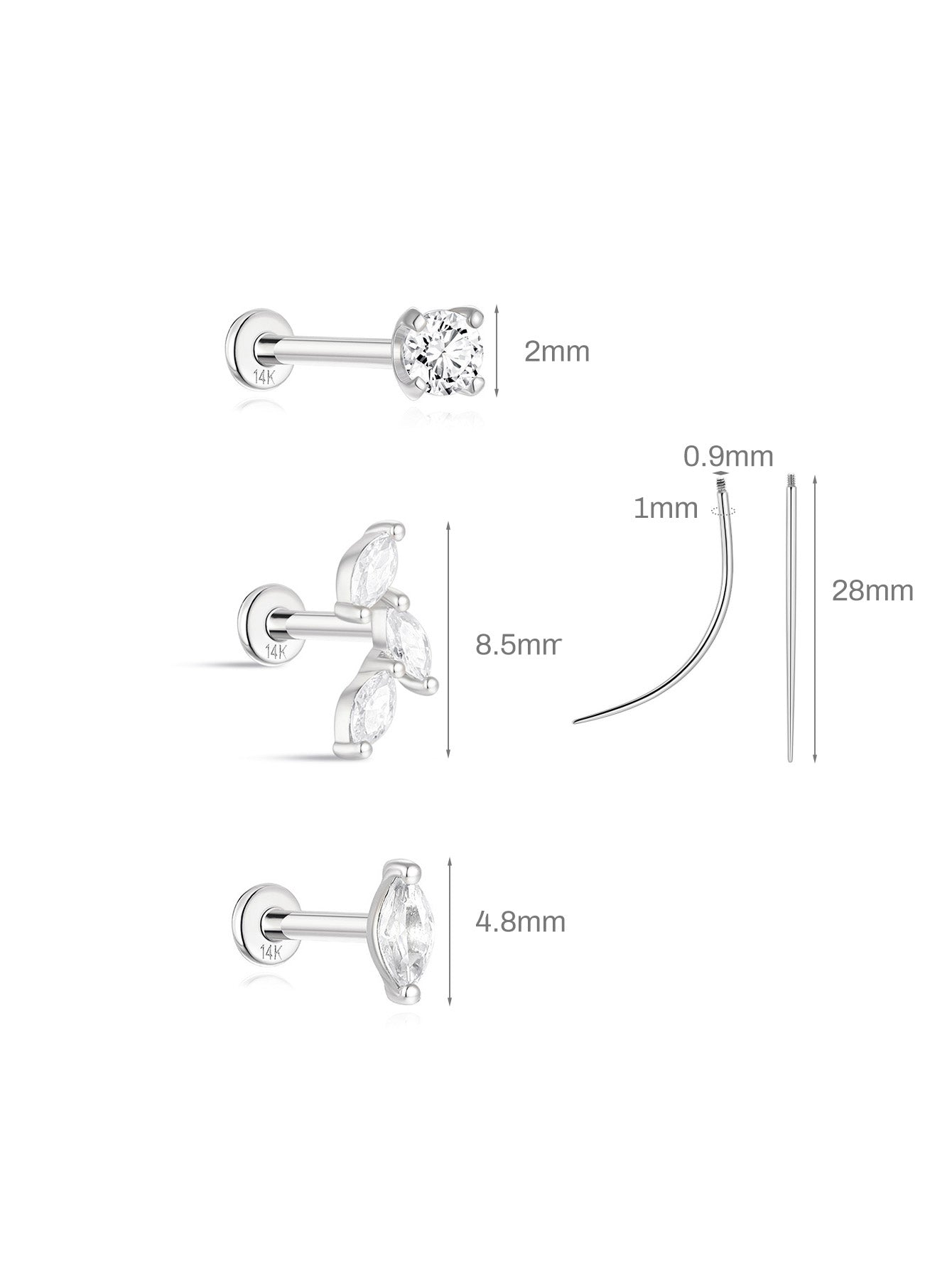 - Post Length: 5 mm/ 6.5 mm/ 8 mm